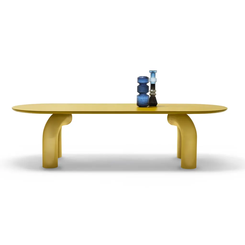 Introducing the ELEPHANTE rectangular table - a symbol of refined dining. With a sturdy polyurethane base and wooden top, its thick design exudes elegance and stability. Its soft curved legs offer an exquisite touch, making it a perfect fit in any setting - from classic to modern. Available in a range of finishes, including matte and glossy lacquer, in luxurious colors such as white, black, gray, and ivory. Elevate your dining experience with this monumental and poetic piece.