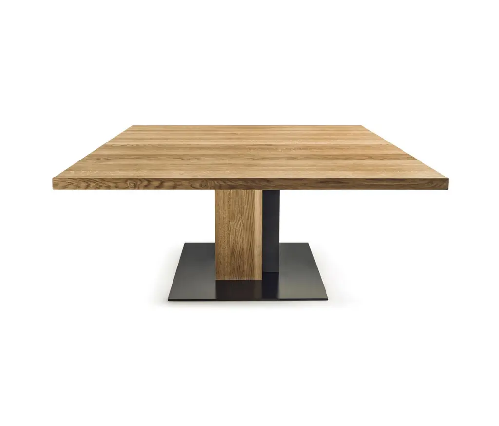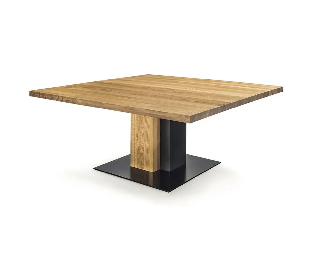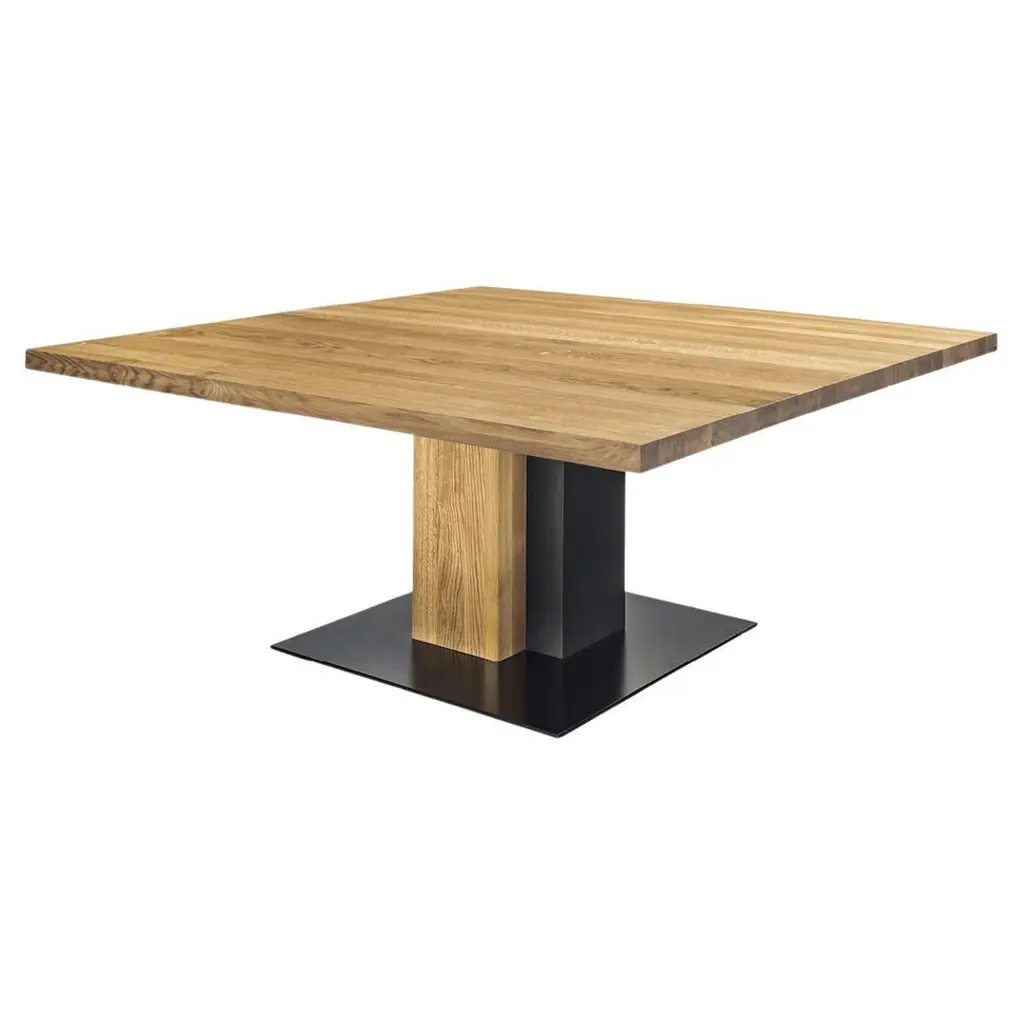 Fully customizable dining table in solid Oak wood, with leg made of two parallelepipeds integrated with each other, like an object and its shadow.Union between solid wood in glued lists and a part made of a bended iron plate. Floor plate in iron.As an alternative, the iron parts can be produced in the concrete effect finish.Materials: Solid Oak With Knots or Solid Oak Without Knots, Iron.Other wood species available upon request.We will be glad to check with the factory’s technical team if sizes, finishes, and colors can be customized.We do our best to expedite production and to ship and deliver product within the listed lead time, however current lead times might be longer due to global shipping backlog and delays. These delays are out of our control and cannot be a reason to cancel an order.Our pricing includes all costs for international shipping to the U.S., as well as duties and customs clearance fees. Please be aware that local delivery within the U.S. is not included. We offer white glove, front door, and warehouse delivery options. For shipments outside the U.S., kindly reach out to us for a detailed quote.
