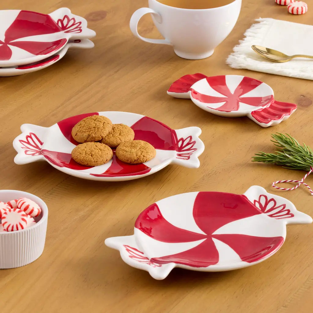 Shaped like a traditional holiday peppermint candy, our red-and-white tea rest is a sweetly whimsical addition to the dining table. Festive and glossy with a hand-painted finish and textural "wrapped" handles, this artisan accessory is a memorable gift for tea lovers at a special World Market price. Perfect for refreshing your serveware with the spirit of the season, this exclusive tea rest brings retro Christmas magic to the kitchen.