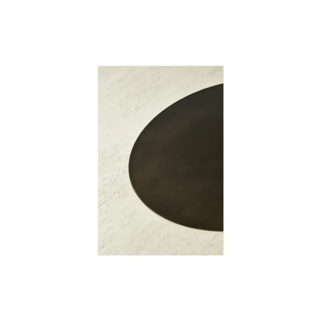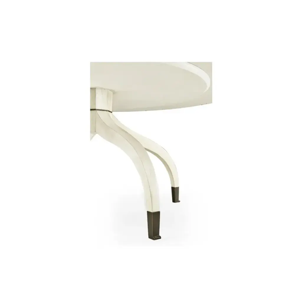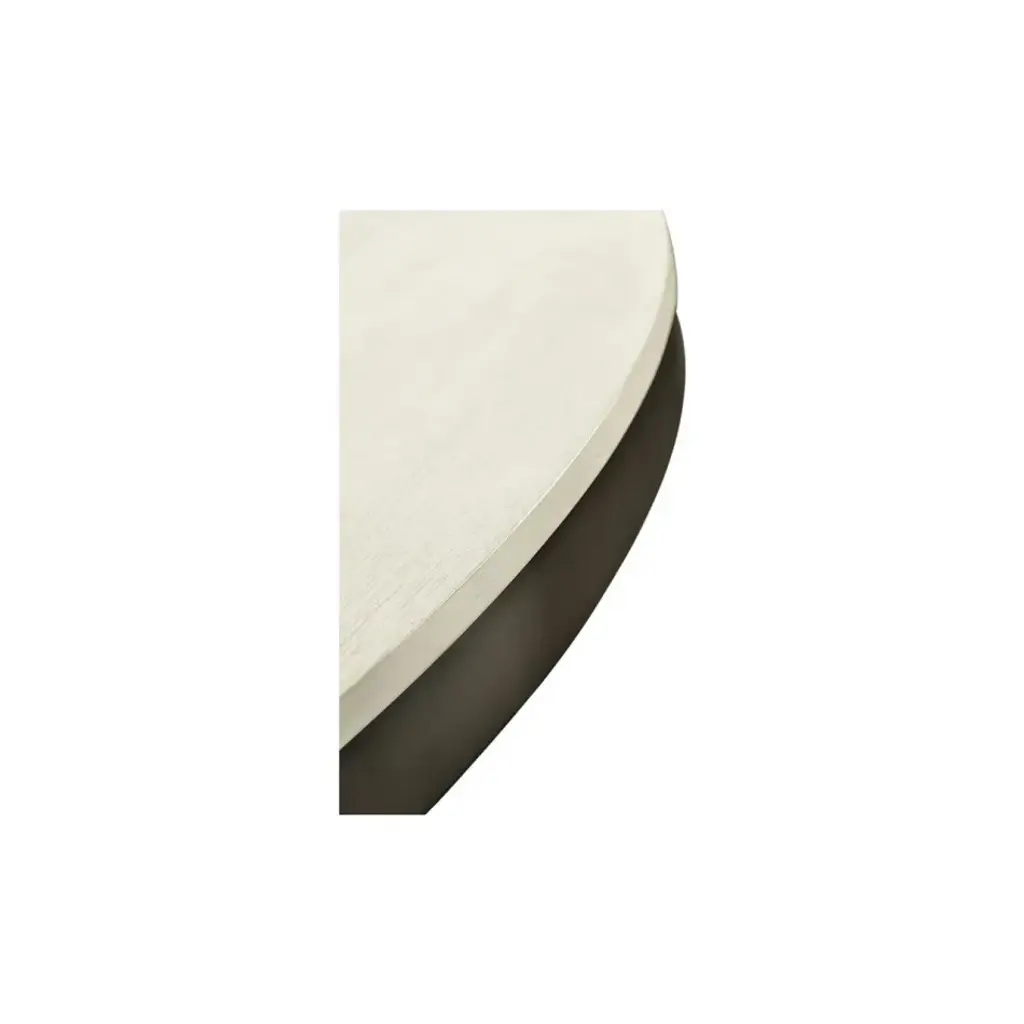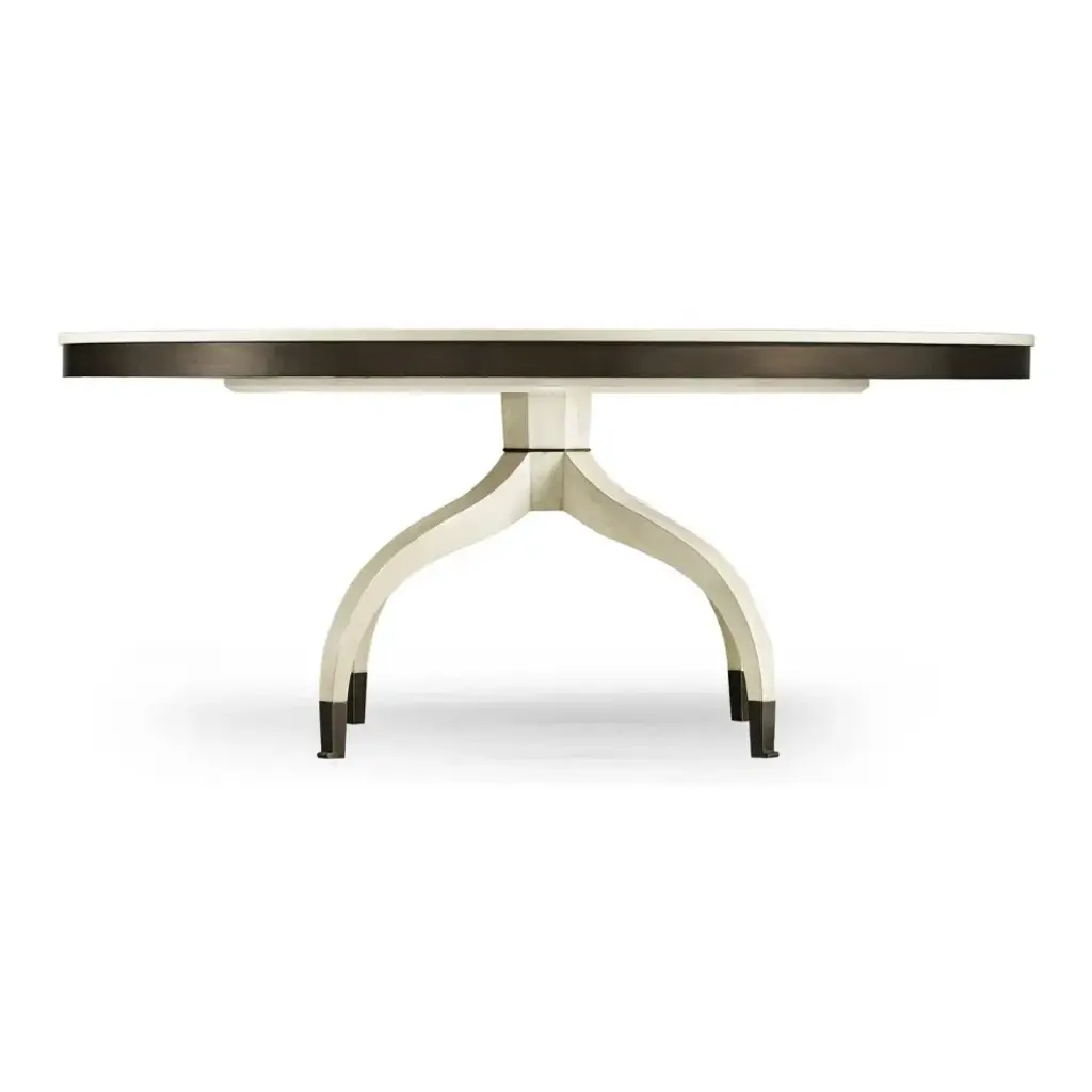 496034-72D-CWO Effortlessly complementing formal and casual interiors alike, Jonathan Charles' Lodestone Buckingham Dining Table boasts a round Oak top finished in tasteful Country White. Accented with a Zinc fixed Lazy Susan accent, apron and ferrules this table floats on four spider legs. Lodestone delivers sophistication and understated glam-perfect for foyers and dining spaces.