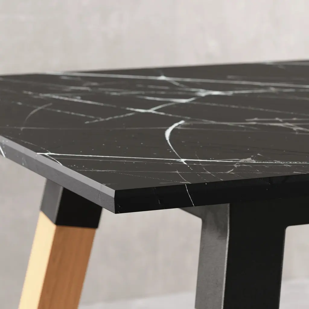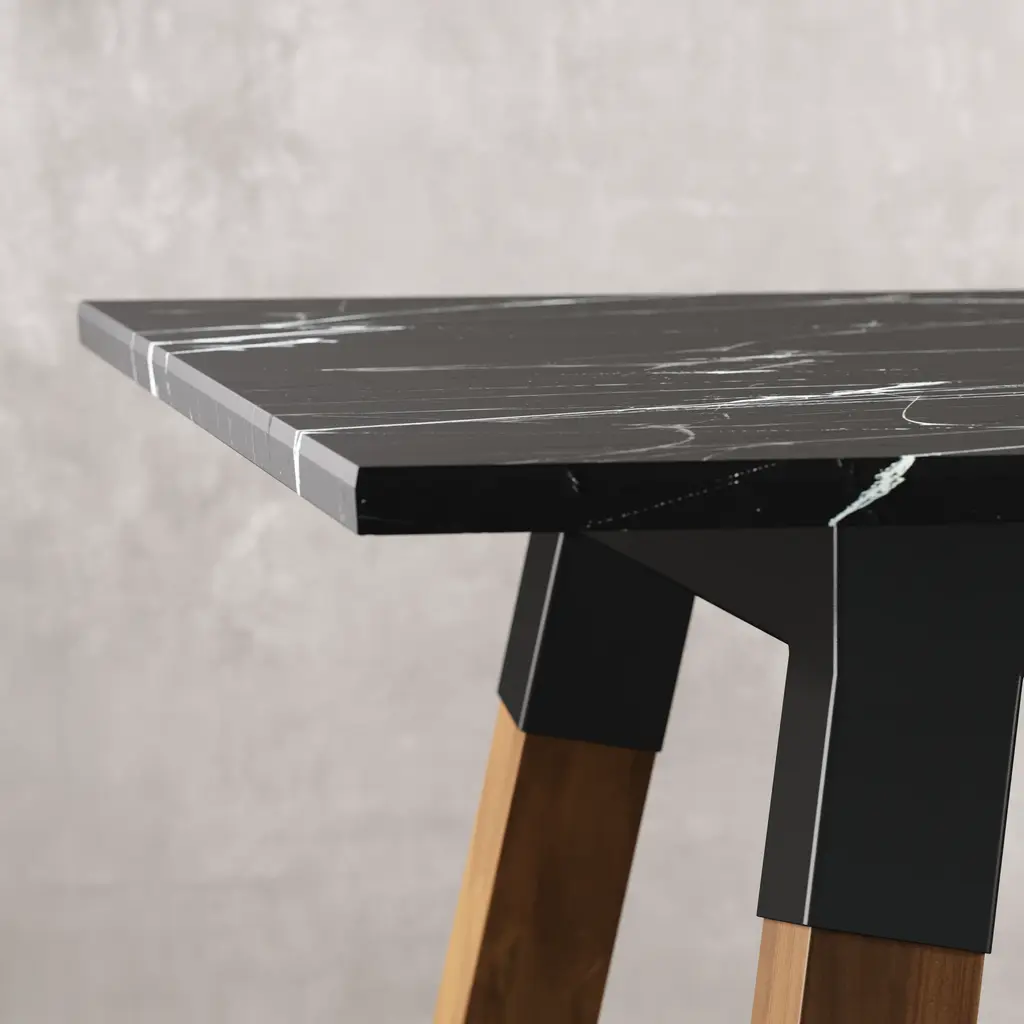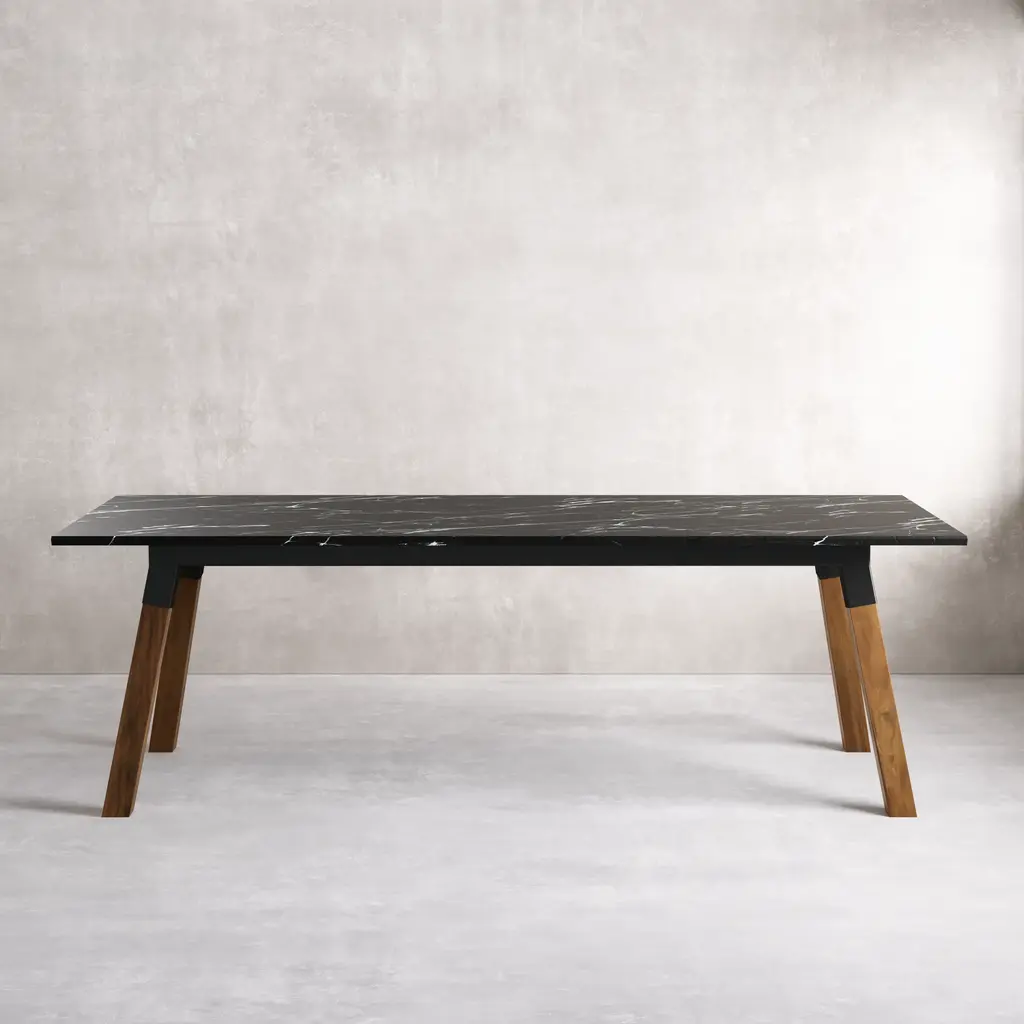 A mid-century structure with an organic twist, our Reims dining table balances classic and contemporary aesthetics. The teak wood legs contrast the dark ceramic top. This outdoor dining table is perfect for gathering with friends and family. Practical and effortlessly elegant, add our Reims dining table to your terrace or outdoor space. Dimensions: 94.4''W x 39.3''D x 29.9''H Tear Sheet