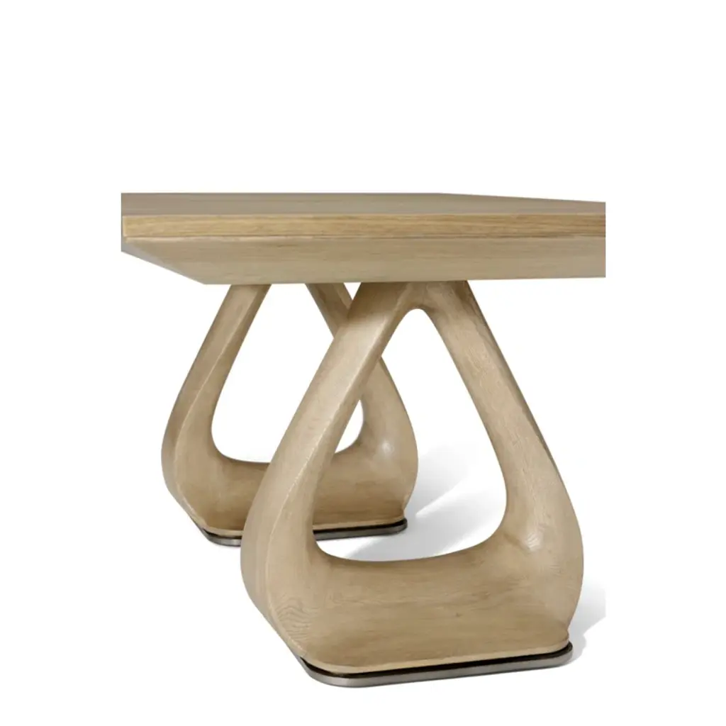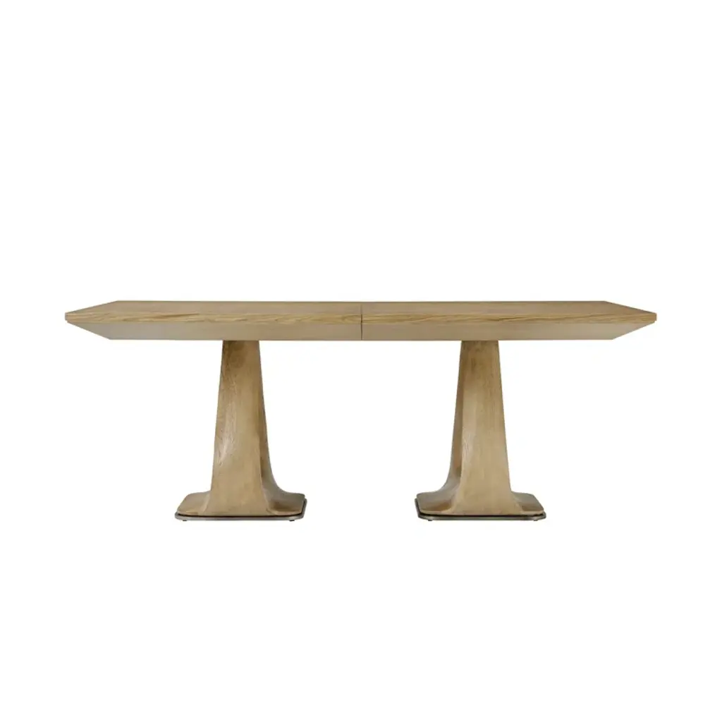 The Repose dining table brings a sense of timeless elegance to your dining space. Its extendable design offers versatility, making it perfect for both intimate dinners and larger gatherings. Crafted from solid oak wood, this table combines natural beauty with robust craftsmanship. The tabletop adds a touch of sophistication, while the extendable feature ensures adaptability to your hosting needs.