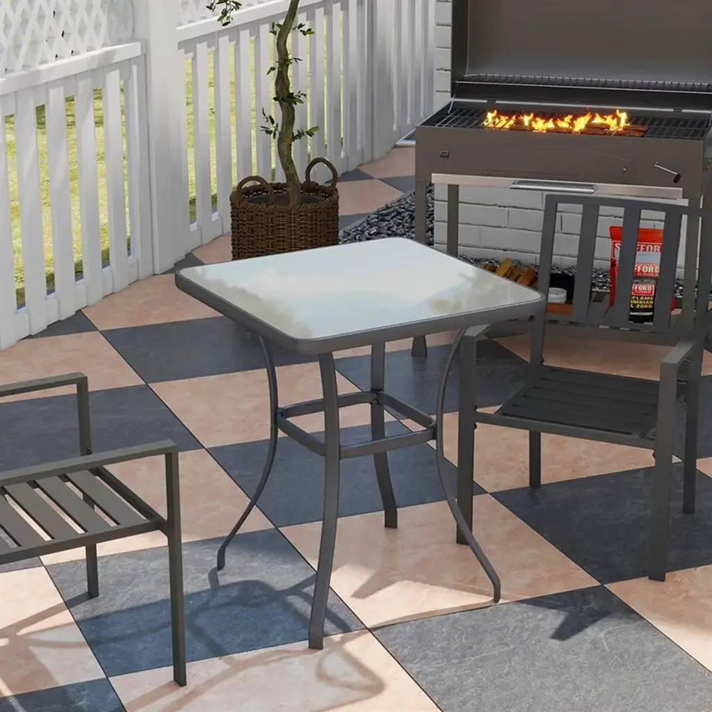 No room? No problem! Enjoy the pleasure of outdoor dining regardless of the space you have with the 33" outdoor patio table. Patio tables perfectly designed to take advantage of smaller areas, it's the ideal size for a patio space or cozy breakfast nook. Don't let a lack of space stop you from enjoying your meals outdoors, get the 33" outdoor table today!Features:- Contemporary bistro table made with a sturdy metal base and tempered glass top- Ideal size for a smaller patio space or cozy breakfast nook- Weather-resistant material built with outdoor use in mind- Easy assembly right out of the boxSpecification:- Color: Black- Material: Steel, Tempered Glass- Overall Dimensions: 27"L x 27"W x 33"H- Watermarked tempered Glass Thickness: 0.25"- Center Bar Height: 20.25- Net Weight: 21lbs- Max. Load: 165lbs Resenkos Patio Dining Tables,Patio Tables,27" Square Bistro Table Garden Dining Table Outdoor Tempered Glass Table