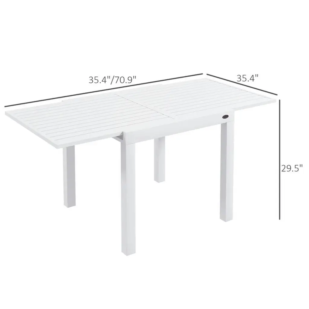 With overall dimensions of 70.75"/35.5" L x 35.5" W x 29.5" H and a weight capacity of 154 lbs, this expandable table offers ample space for food, drinks, and guests while maintaining durability for lasting outdoor use. Resenkos Patio Dining Tables,Patio Tables,Expandable Patio Table, Outdoor Dining Table for 4-6 with Aluminum Frame, White