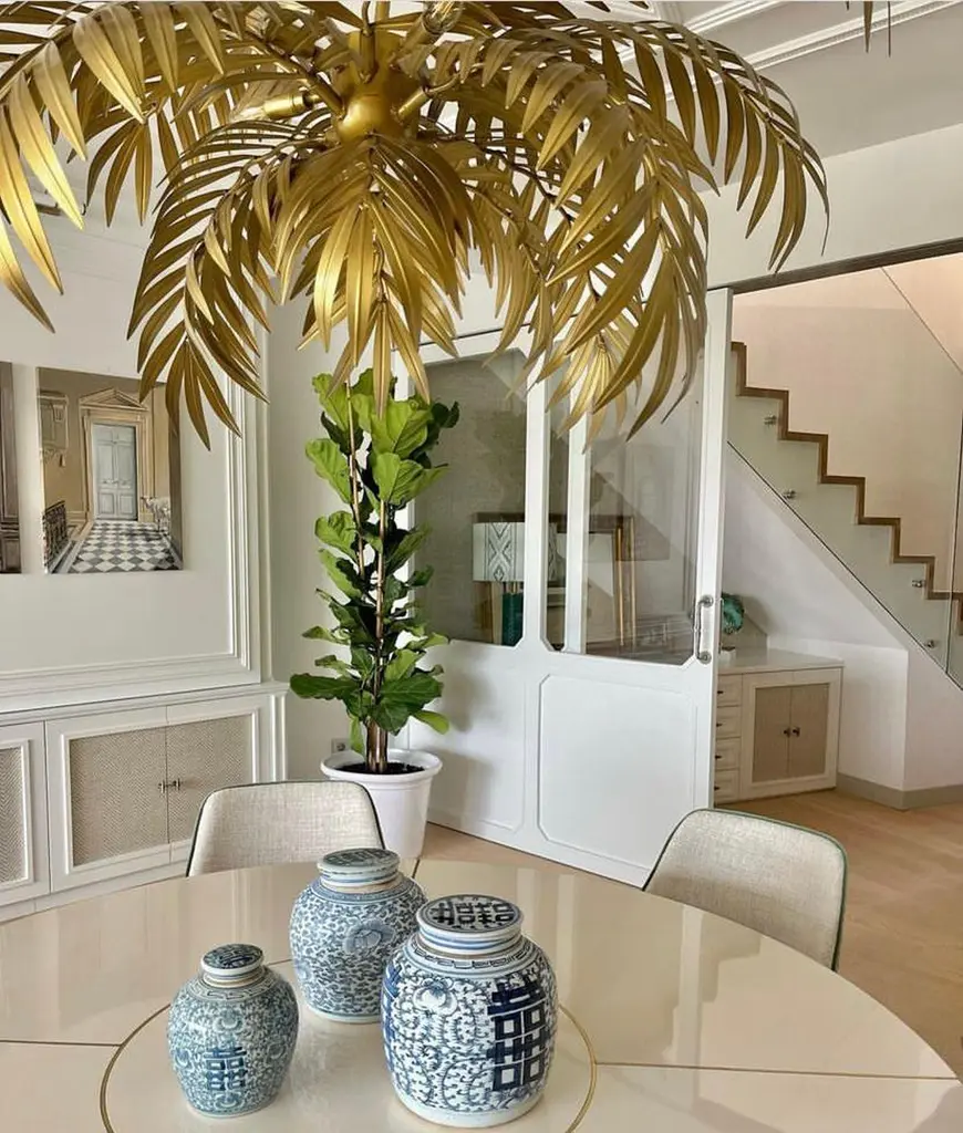 Retro Design Round Dining Table Palm Springs Style High Gloss Laminated & Brass Details Medium SizeDiscover our incredible collection of retro-style design tables inspired by the iconic decoration of the 1950s, 60s, and 70s of Palm Springs in California and the mid-century modern style. In Barcelona, we have created a series of tables made in Spain with high-quality materials, including laminates of multiple colors in a high-gloss finish. But what really makes these tables unique is the addition of brass marquetry details, which bring an elegant and sophisticated touch to any space.Our tables are available in three different shapes: round, oval, and rectangular, with a top that rests on a central pedestal in the same color or a different combined color. In addition, the pedestal can feature a brass or steel base, in a polished or matte finish. Available as a dining table, sofa table, or coffee table.With the introduction of high-gloss laminate in the 1930s, this material became a symbol of luxury in interior decoration. From cafes and restaurants to the most luxurious ocean liners, such as the famous "Queen Mary," high-gloss laminate was a key element of elegance. And in the 1960s, with the rise of formica for furniture, it became a symbol of the modern lifestyle.Don't miss the opportunity to have a piece of inspiration from this iconic era in your home or workspace. Retro design tables, inspired by the 60s, that transform any environment into a place of style and elegance