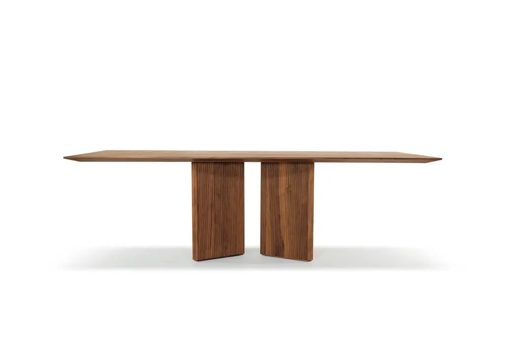 Table with top made of solid wood glued lists with thin edges. The base consists of prism-shaped legs, each characterized by three solid wood vertices, and surfaces that can be smooth or with Fresart processing, which creates a modern and dynamic geometric effect.Designed by Giuliano and Gabriele Cappelletti and made in Italy.Available in a variety of sizes in Walnut, Cherry, Maple and Oak Wood. Cherry and Maple are only available with smooth fronts.