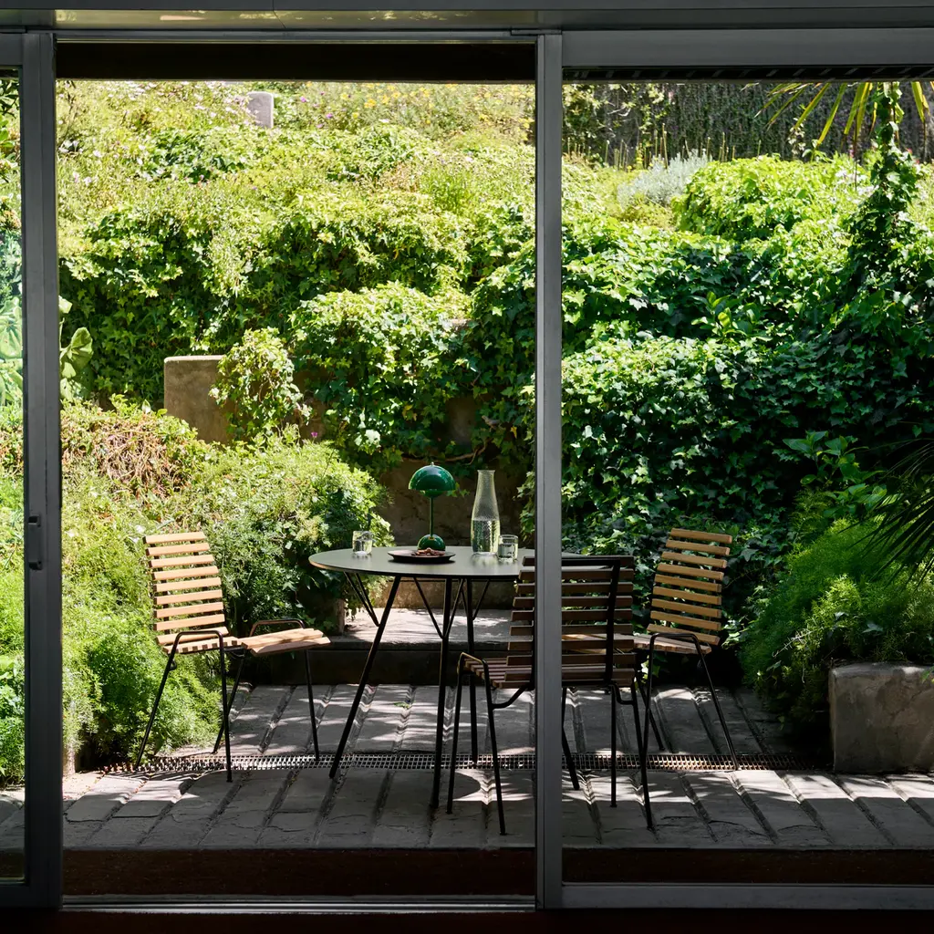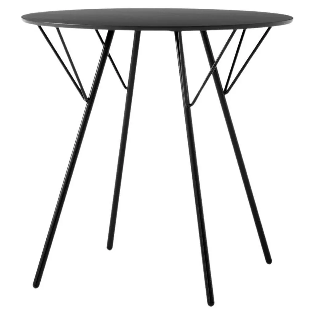 The RFH Terrace Tables RD5 and RD6 by &Tradition, designed by Robin Day, offer a sleek and durable design created for the terraces of London’s Royal Festival Hall. Both models feature black powder-coated steel frames, providing a weather-resistant and sturdy finish ideal for outdoor use. The minimalist design includes splayed legs, adding a touch of industrial style while ensuring stability on a variety of surfaces. The tabletops are crafted from compact high-pressure laminate, finished with acrylic lacquer and melamine resin, making them highly durable against environmental wear. Designed to pair seamlessly with the RFH chair collection, these tables suit both modern and classic outdoor settings, perfect for terraces, patios, or garden dining areas. Plastic gliders are included to protect floors and allow easy movement.