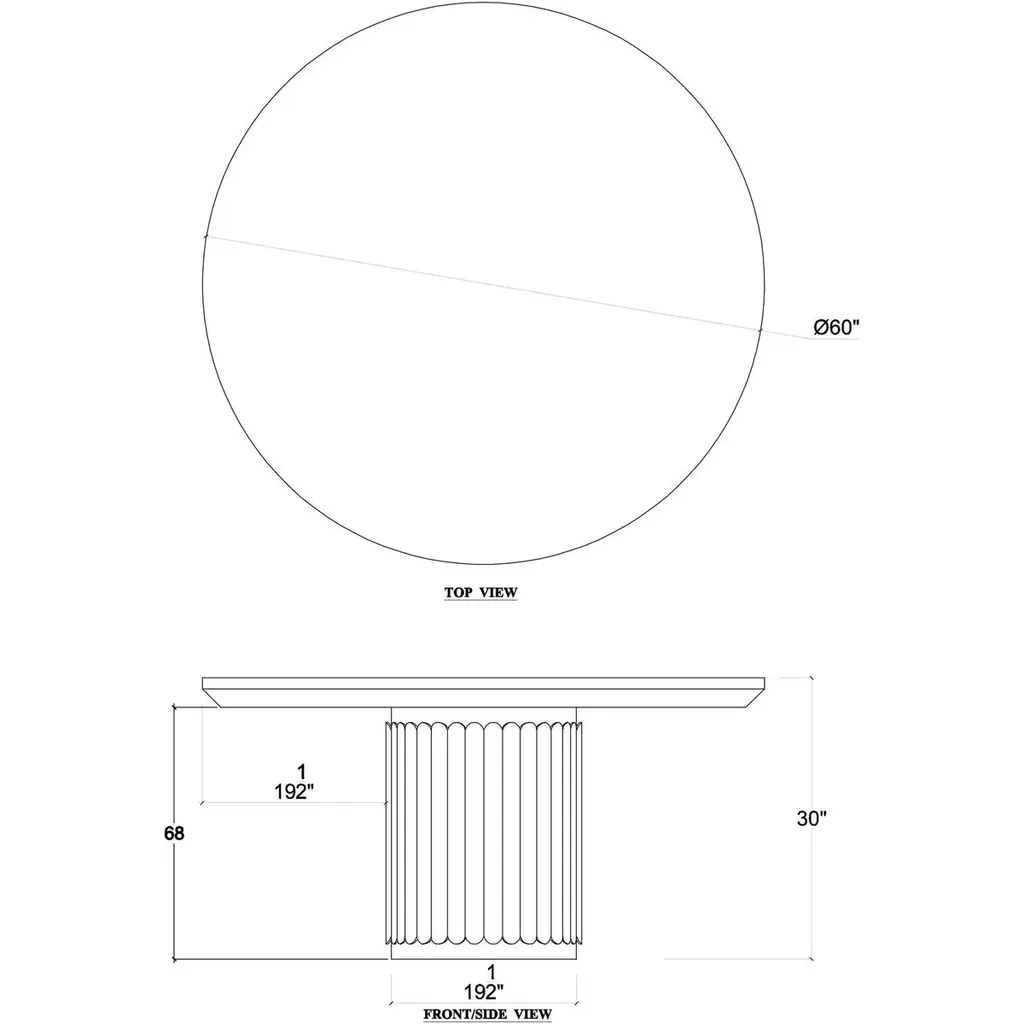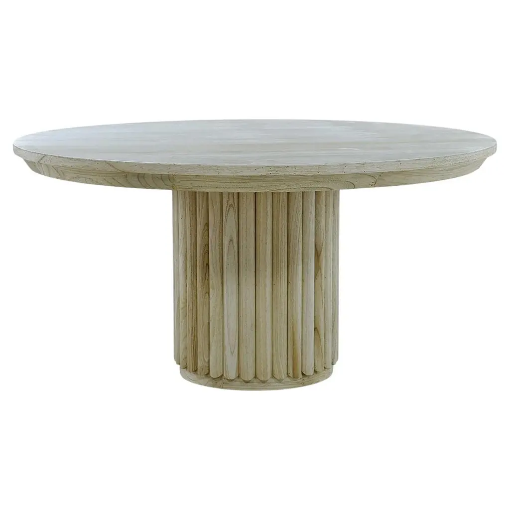 A perfect blend of contemporary design and elegant craftsmanship. Ideal for hosting family dinners and social gatherings, this table promises to be the centerpiece of your dining area.Made with solid mahogany, this table is finished in our Sandbar finish, adding a sophisticated, organic, natural touch to your interior.Raised on an unusual, robust reeded, and ribbed pedestal column, this table provides exceptional stability and visual interest, combining modern and classic elements seamlessly.Dimensions: 60" W x 60" D x 30" H