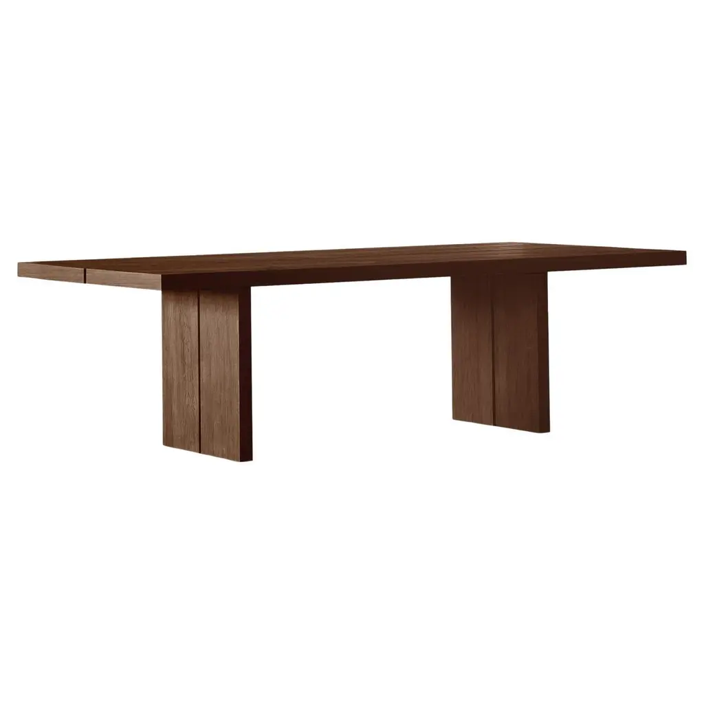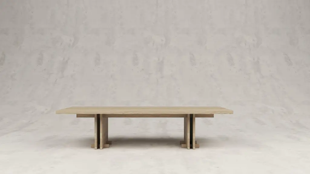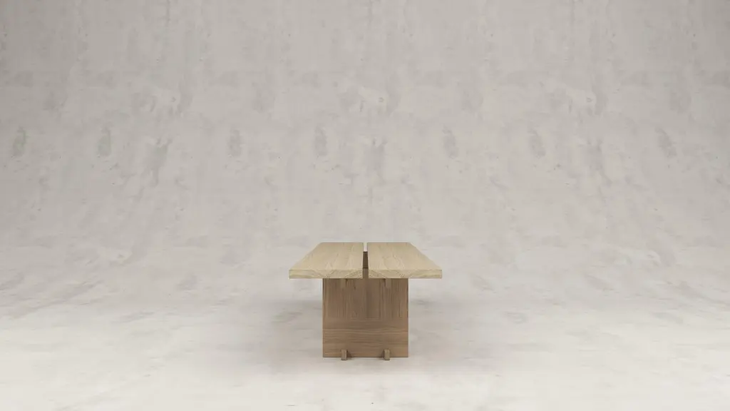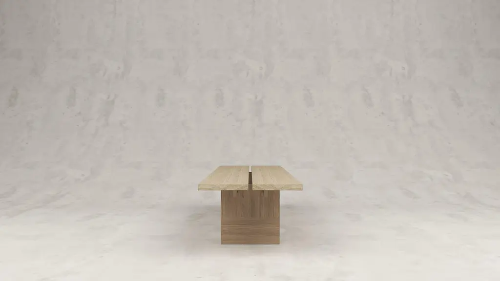 Rift wood grain dining table by Andy KerstensDimensions: W 240 x D 98 x H 74 cmMaterials: White washed larch, metal.Optional little feet at table legs, detail of rotation of wood grain halfway the table legs.Handmade in BelgiumAvailable in solid Larch, oak and walnut and in 320 x 102 x 74 cm, and 450 x 106 x 74 cm.The design was created by the need for a simple esthetic with an honest construction.By duplicating all elements, the table has a stable basis and also a certain finesse. The simple idea to split the elements creates an honest and visible construction that is self-supporting, with a nod to the Japanese design method. Metal details and leg casings stand in contrast with the naturally worked wood and give the whole design more durability. Deep and tactile patines on the metal form a dialogue with the brushed wood and tell a story about its use and its traces through time. The design is available in multiple realizations in terms of material and lengths. There are also the exclusive versions in natural stone and terrazzo.The natural materials all passed through the hands of our talented Belgian craftsmen. Every element is processed and finished in Flanders to guarantee the quality we’re striving for.Rift is available in various combinations of materials and dimensions. All materials are processed and finished by hand with a lot of care the tactile finishes of the metal details blend with the wooden or stone bodies. Different finishes of the metal parts are possible. A wax enriches the patine finishes, which results in these parts changing through time. They will age more beautifully and can get darker after time. The wax treatment should be repeated every few months. The varnish finish stops the aging process and ensures that the texture and color stay the same. Therefore, the metal is resistant to external factors and very easy to maintain.Wooden parts follow te same principles. Oil treatments emphasize the natural look of The stone bodies are sawn or honed, depending on your choice.Small yet functional feet supporting the table legs, are optional on the wooden versions.Kerstens was founded in 2015 and is based in Antwerp. Kerstens is a multidisciplinary design studio with a clear vision of architecture, interior design, and furniture design. The focus is on total projects in which an affinity for craftsmanship, detail, and atmosphere are essential. This applies both to the residential market and to catering and retail projects.Our vision on interior is to create an atmospheric quality within a refined architectural design language. We strive for simplicity, a timeless, minimal design combined with rich, natural materials for a warm and sober look. The atmosphere created by a dialogue between unique objects, intriguing art, and tactile materialization results in contrast to a larger architectural whole and leads to a deeper emotion. Craftsmanship and sustainability are inextricably linked and form the basis of a project. Our work exudes a certain serenity, resulting from a monochrome and timeless signature, combined with a touch of understated luxury.Each assignment is unique and analyzed extensively to obtain a balanced basis for the concept and its further elaboration. Research into the program, use, context, layout and proportion, light and space, materialization, and budget are an important part of the process. A project is a combination of wishes, ideas, and designs in which we work in a detailed manner and on various scales. The interior is the extension of our senses and actions and is central to daily life. The personal interpretation and perception of the user, therefore, form a guideline throughout our process. Designing the smallest details is crucial to achieving a total design, whereby the mutual relationship of all elements is enhanced by one idea, concept, and design.Andy Kerstens graduated in 2015 as a Master of Science in Interior Architecture (cum laude) at the University of Antwerp. With the preparatory trajectory, in 2013 he obtained his Bachelor of Arts in Interior Design at the Thomas More College in Mechelen. Freelance interior designer at Dieter Vander Velpen Architects and previoulsy at De Meester Vliegen Architects.