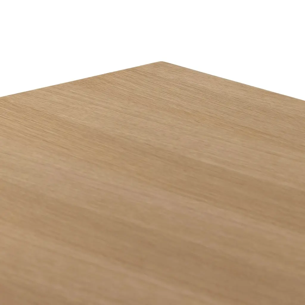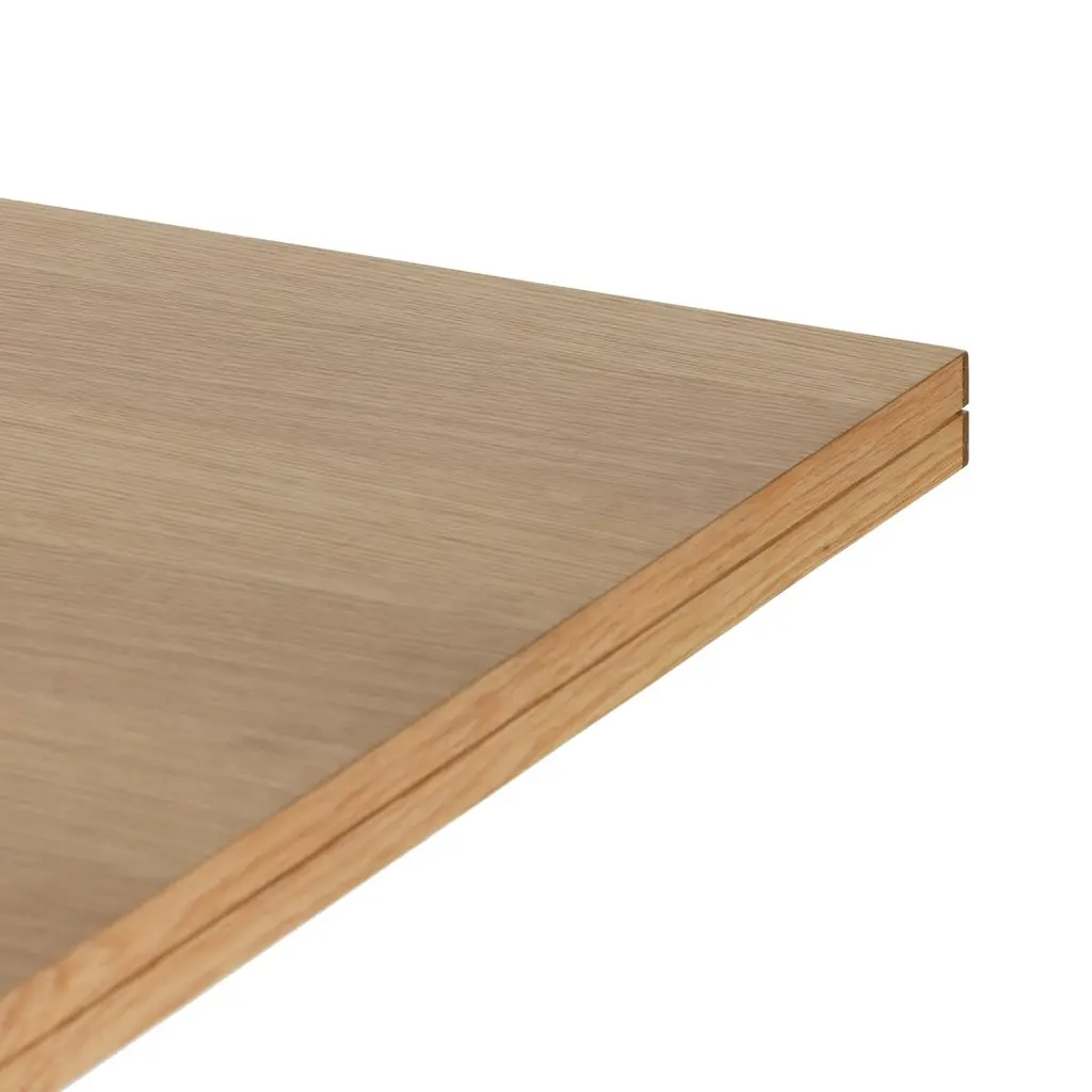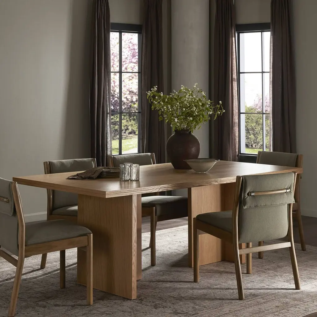 Oak is prized not only for its durability and scratch resistance but also for its distinctive grain. With its bold lines and smooth planes, this dining table shows off the wood's beauty to perfection. Just shy of six feet wide, the table can seat six people.