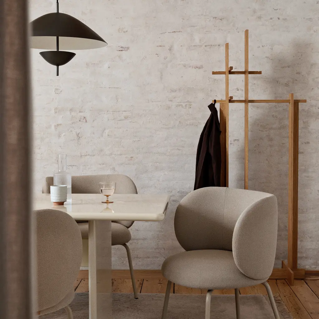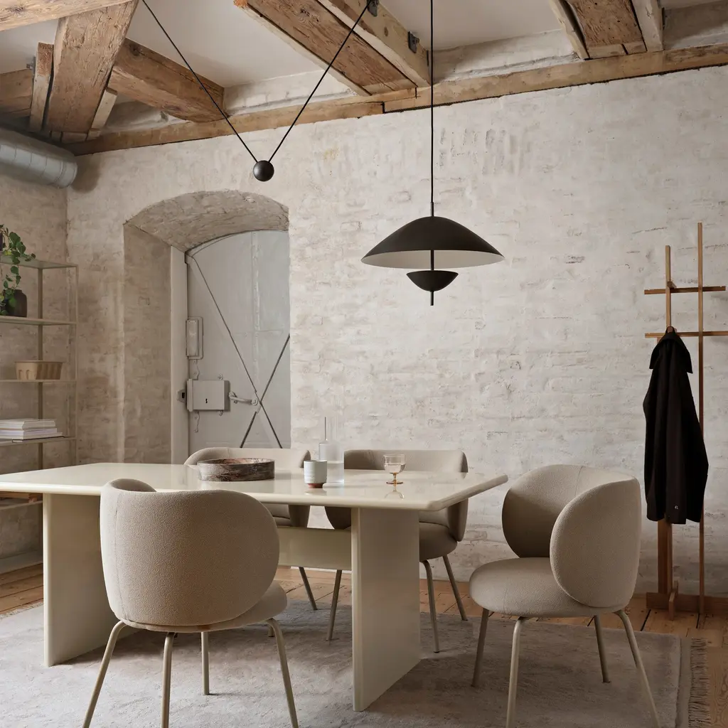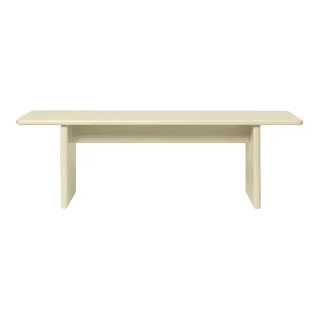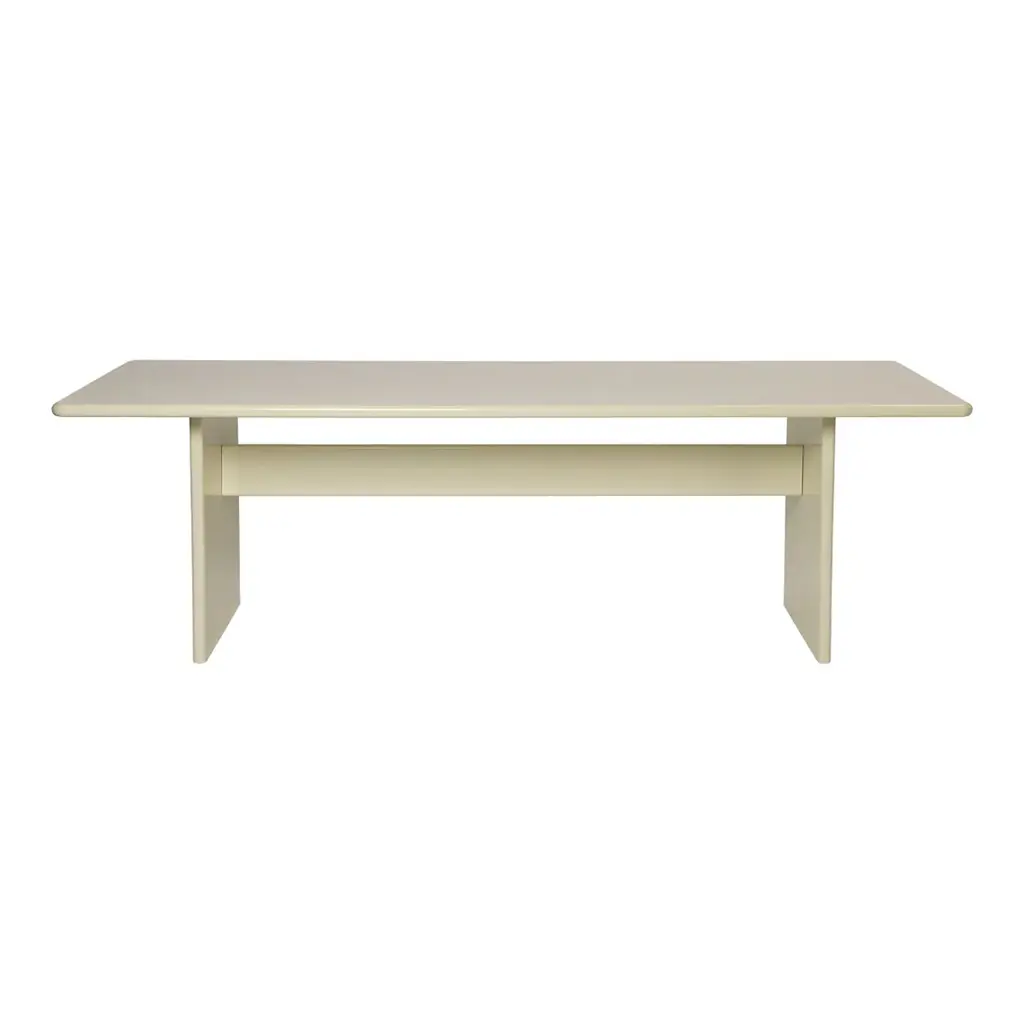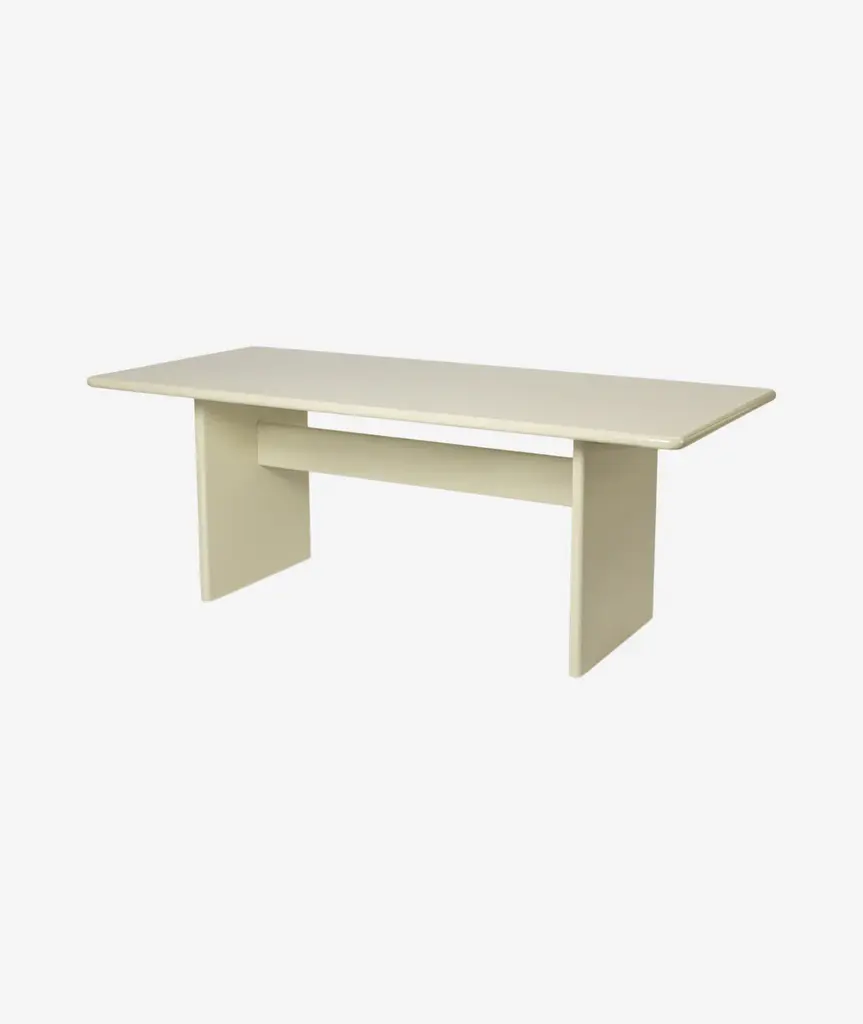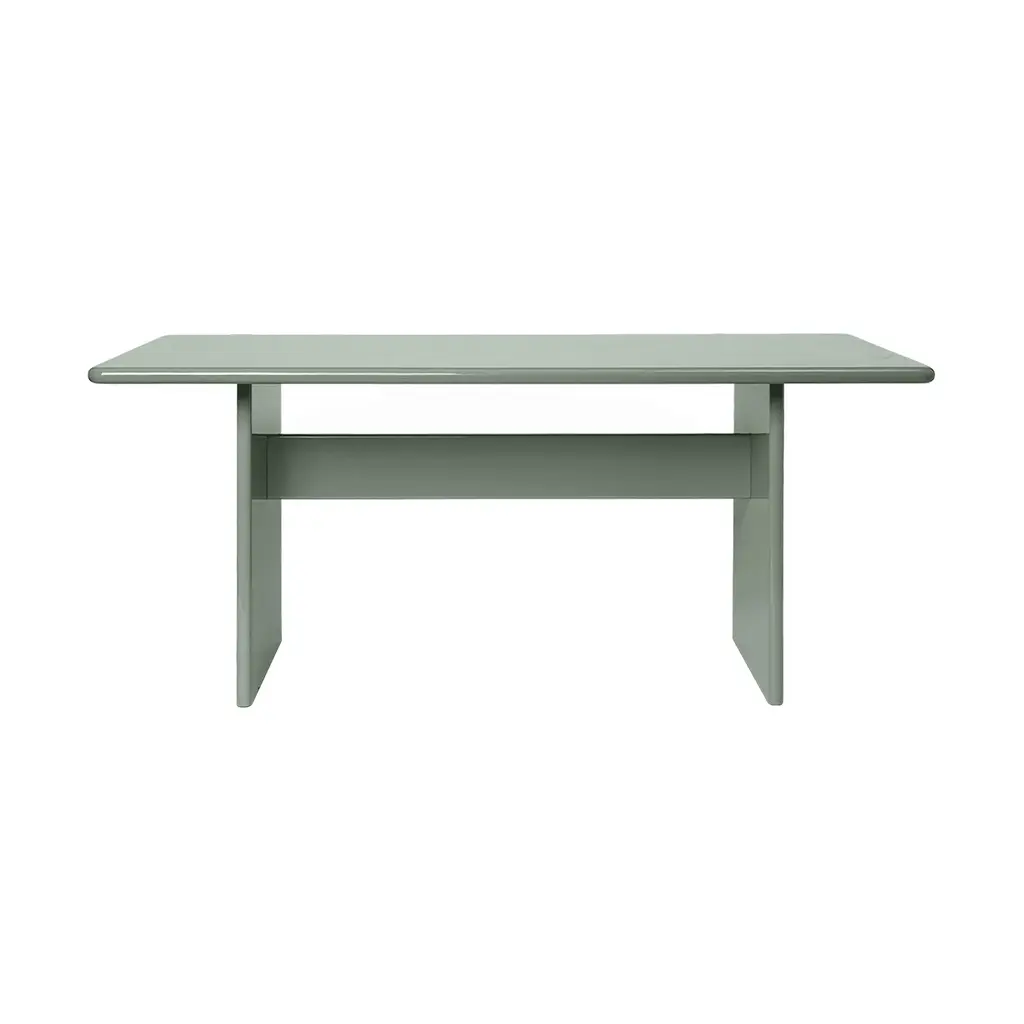 The Rink Dining Table blends a classic design with a smooth, high-gloss lacquer finish on an FSC™-certified MDF core, creating a sleek and reflective surface. Its shape is balanced by rounded edges, giving it a softer, modern feel. Offered in 2 sizes and in colors Eggshell or Tea Green, it can fit into a variety of dining spaces. This table seamlessly integrates with different interior styles.