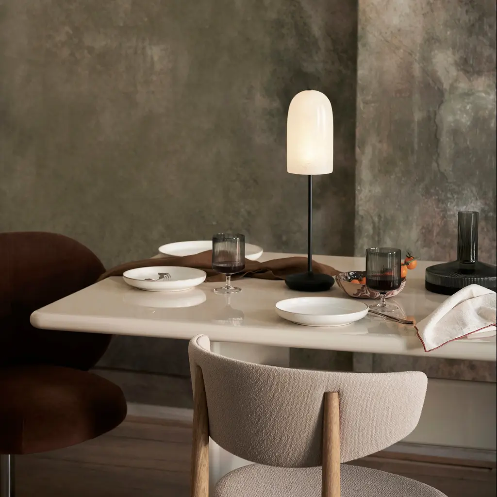 The Rink Dining Table blends a classic design with a smooth, high-gloss lacquer finish on an FSC™-certified MDF core, creating a sleek and reflective surface. Its shape is balanced by rounded edges, giving it a softer, modern feel. Offered in 2 sizes and in colors Eggshell or Tea Green, it can fit into a variety of dining spaces. This table seamlessly integrates with different interior styles.