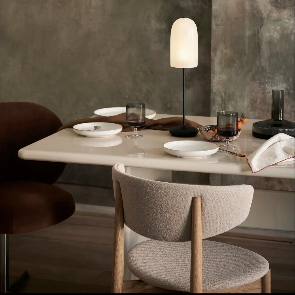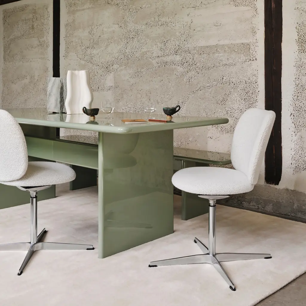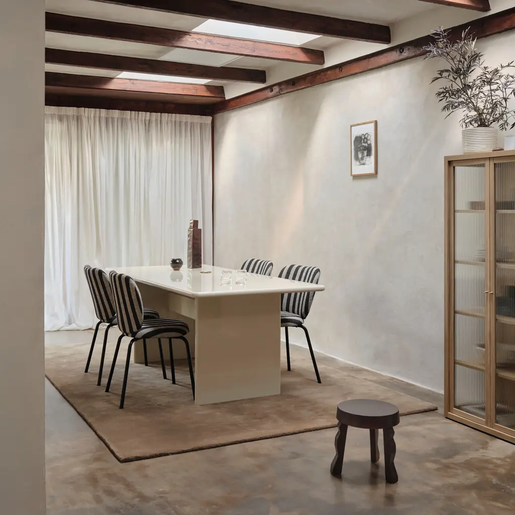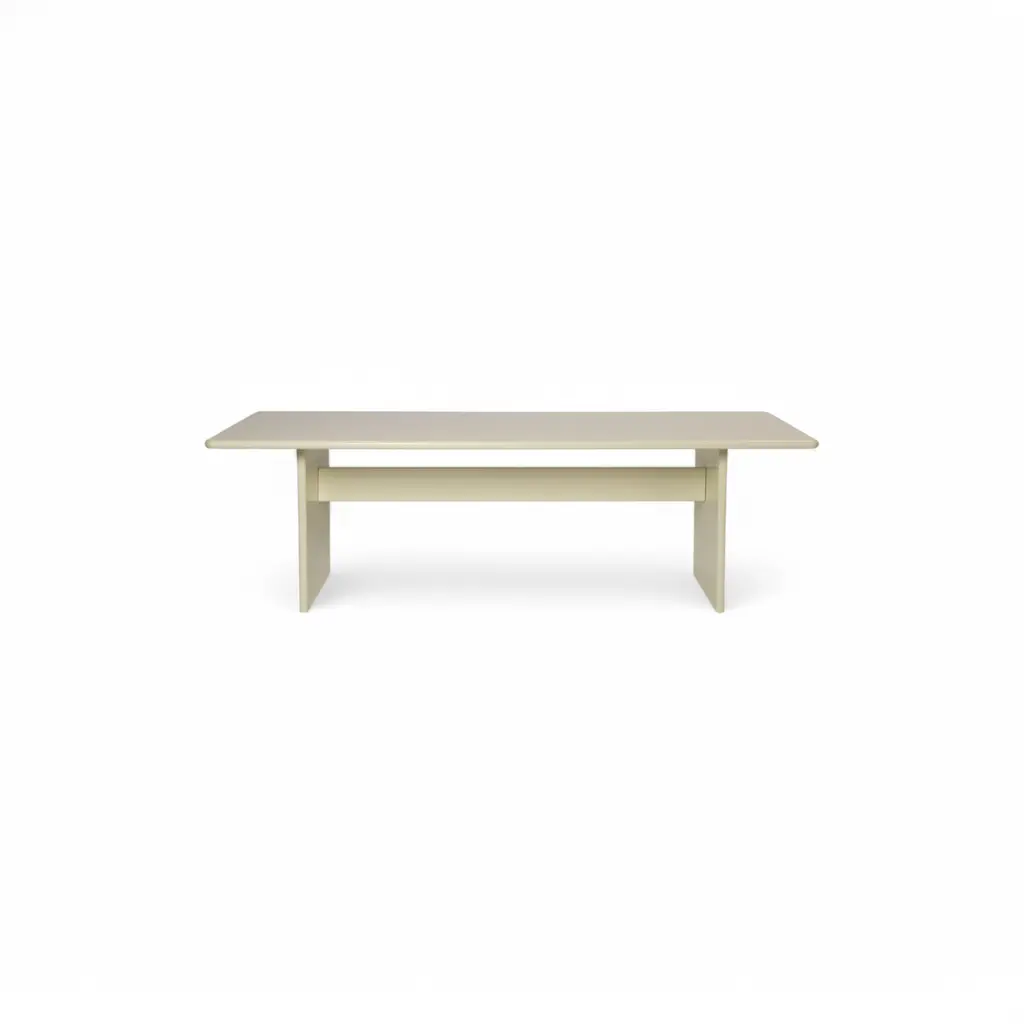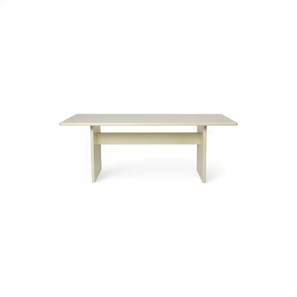 Glossy, elegant and versatile, the Ferm Living Rink Dining Table makes any kitchen or dining area look extra stylish. The design combines slender, wide supports with a slim top in a minimalist composition, ensuring that the table will fit into any décor. Rounded corners and edges soften the clean lines and geometric shapes, while a high-gloss lacquer finish adds a touch of glamour to the design. Available in two light colors and two sizes, the Ferm Living Rink Dining Table suits any space and color palette. Use it to upgrade your dining space and make your guests always feel welcome. Love this minimalist dining table? A matching bench is also available. To protect the high-gloss lacquer finish, use coasters and soft, protective materials when serving food or drinks.