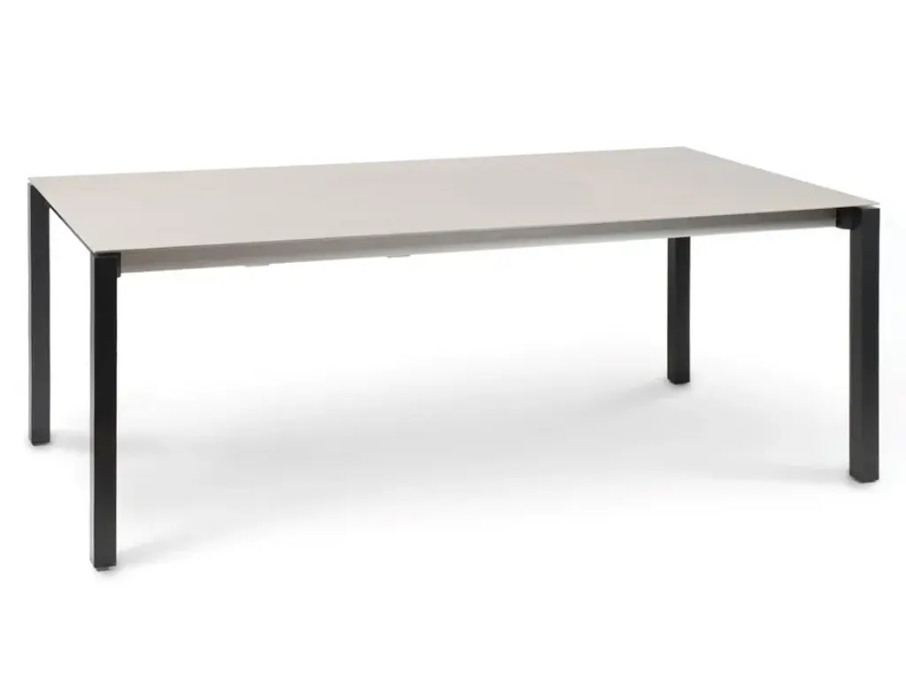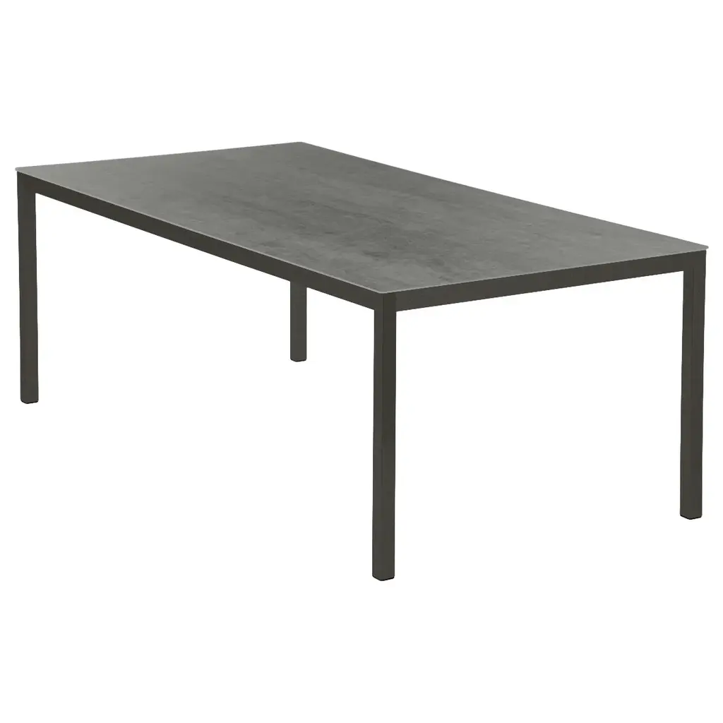 The strong, stainless steel Rio table frame in anthracite or white is a perfect match to all chairs of the same material. The stable table legs, square 50 x 50 cm or flat oval combined with the solidly welded frame contribute in a stable and elegant manner to the available tabletops. Surfaces made of fm-laminat spezial, fm-ceramtop or teak are a perfect combination with all of the armchairs of the brand. Height adjustable table leg sliders compensate uneven grounds.The Rio Collection is a true eye-catcher from every perspective. Its stylish lines and the elegant combination of lounge and dining atmosphere fit perfectly into any living area and invite you to hospitality.Relaxation is guaranteed with a covering made of weather-resistant, dimensionally stable Textilene® and a highly comfortable seat cushion with a soft foam core. Sling full of character with a fabric-like structure and surface feel is adjusted to the lightweight frame made of powder coated aluminium with exquisite craftsmanship. Its strength and excellently processed seams make for a harmonious quality. Armrests are available in either expressive teak wood or as velvety soft-touch version. In each composition Rio is highly durable due to the use of weather-resistant, UV-stable and tear-resistant outdoor materials.Enjoy the special moments and make yourself comfortable. Rio will expand your living and outdoor area and make it as liveable as your interior. The ideal place to relax.