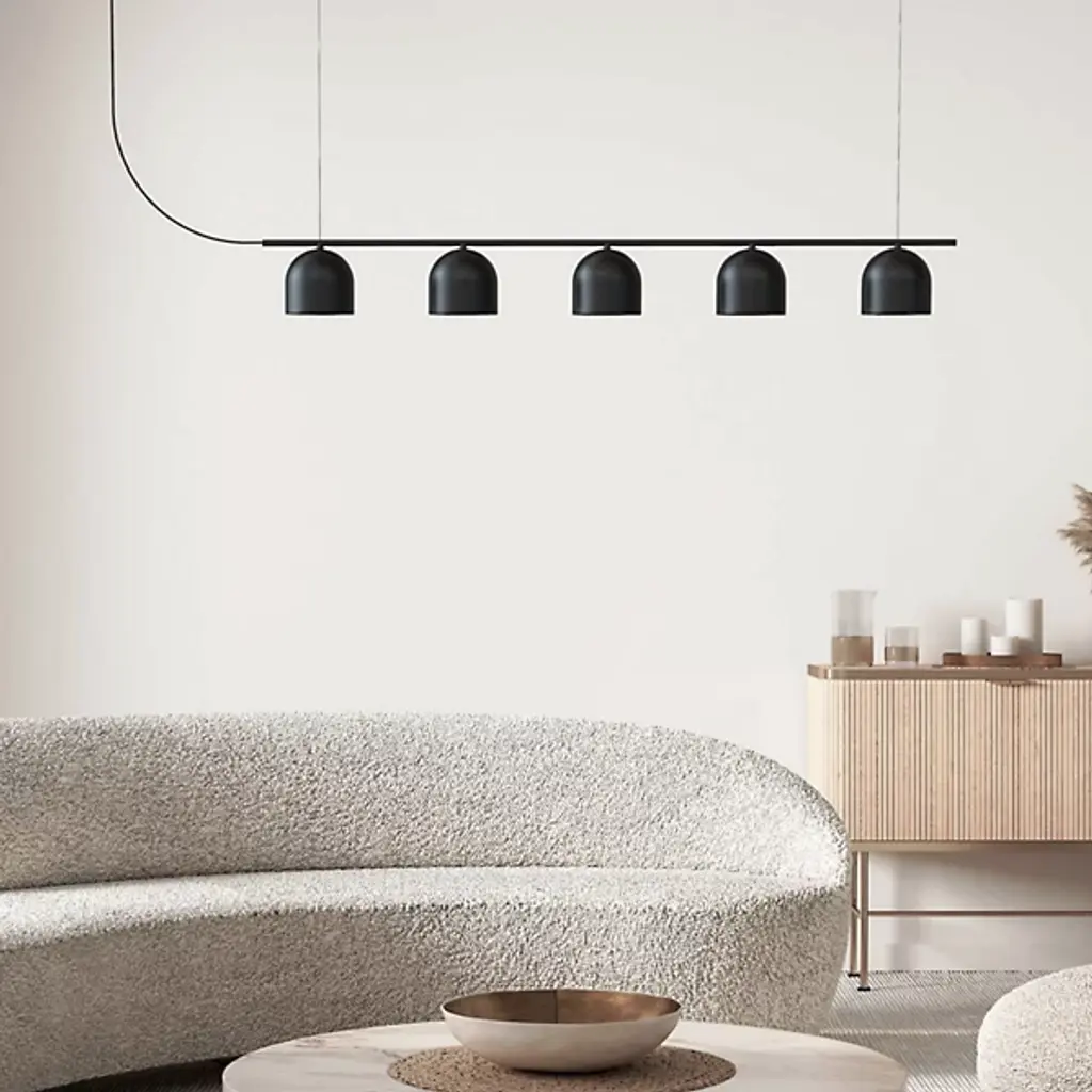 The Rio Linear Suspension from Robin delivers a modern, structured look with an airy attitude. Each fixture is made in Spain and features a series of iron dome shades extending from a slim horizontal bar, all suspended by parallel cables for a clean, architectural feel. Designed to direct light downward, it’s an ideal fit for dining tables, workspaces, or reception counters, able to bring focused illumination and a sense of rhythm to high-ceilinged interiors.