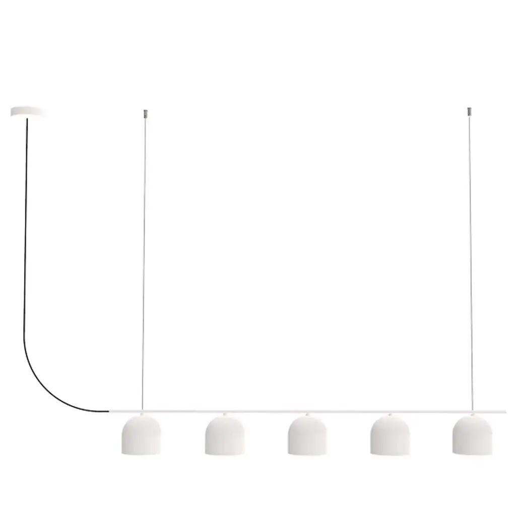 The Rio Linear Suspension from Robin delivers a modern, structured look with an airy attitude. Each fixture is made in Spain and features a series of iron dome shades extending from a slim horizontal bar, all suspended by parallel cables for a clean, architectural feel. Designed to direct light downward, it’s an ideal fit for dining tables, workspaces, or reception counters, able to bring focused illumination and a sense of rhythm to high-ceilinged interiors.