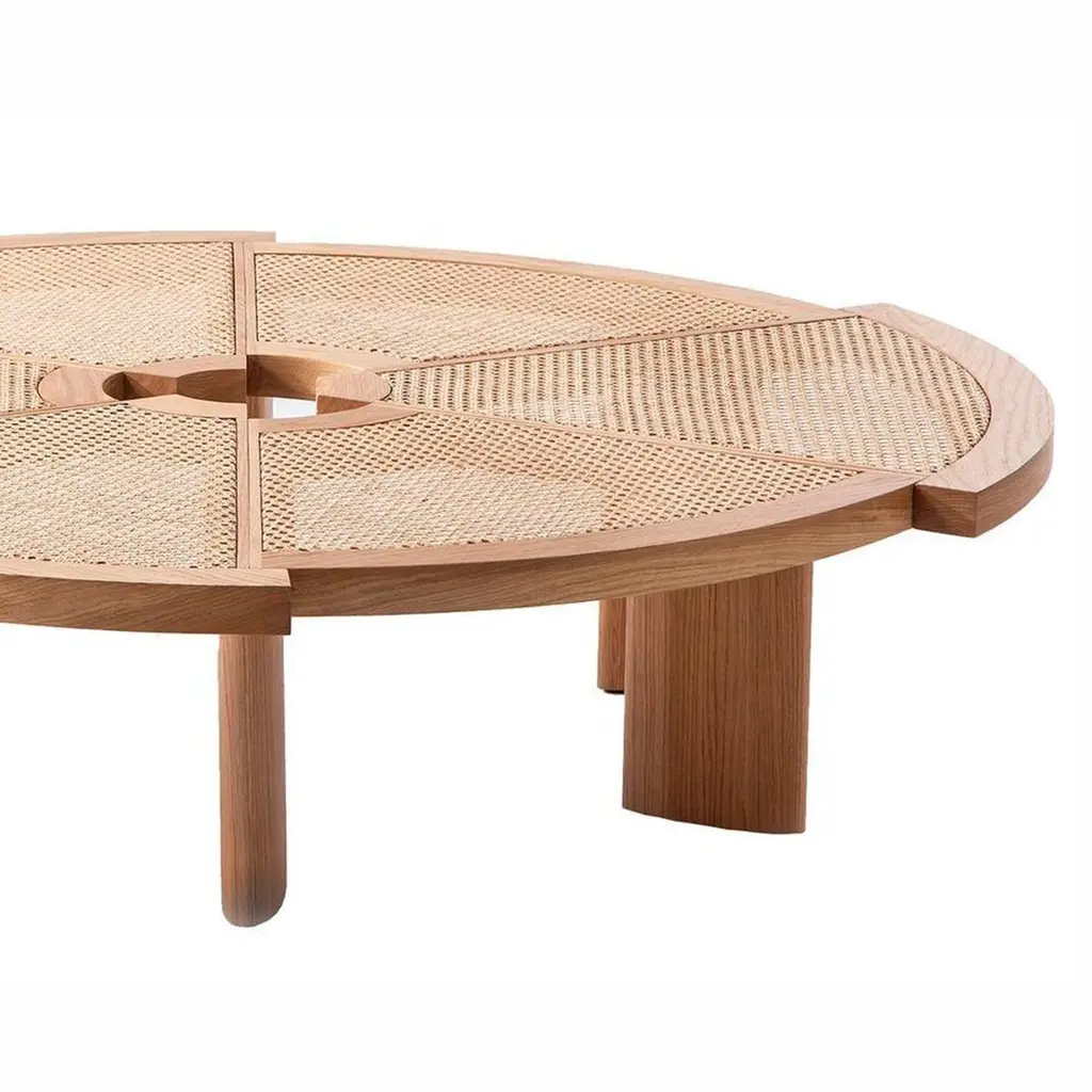 Table designed by Charlotte Perriand in 1937. Relaunched in 2020.Manufactured by Cassina in Italy.The historic Rio design low table combines uncommon beauty and utmost functionality in an asymmetrical structure that, over time, has proven itself to be a true interior decor work of art.Thanks to Cassina’s outstanding artisan skills, the model from 1962 has been reissued in its original form, alternating the use of oak with inserts in Viennese cane, with versions in stained or natural wood with elements in white or black marble.The low table by Charlotte Perriand is composed of six segments of different radius, arranged in a circle but offset from one another to create an uneven outer border in solid wood with a hole in the center, envisioned as a spatial center of gravity.Materials:Rattan /WoodWood is a natural material, subject to changes caused by external factors such as sunlight, temperature, humidity, daily use. These changes are not to be considered as faults but peculiarities of the material, emphasizing its natural beauty.Measurements:Ø 140 cm H 33 cm Important information regarding images of products:Please note that some of the images show other colors and variations of the model, these images are only to present interior design proposals. The item that is selling is on the first image. Important information regarding color(s) of products:Actual colors may vary. This is due to the fact that every computer monitor, laptop, tablet and phone screen has a different capability to display colors and that everyone sees these colors differently. We try to edit our photos to show all of our products as life-like as possible, but please understand the actual color may vary slightly from your monitorAbout the designer:Charlotte Perriand full membership of that avant-garde cultural movement which, from the first decades of the twentieth century, brought about a profound change in aesthetic values and gave birth to a truly modern sensitivity towards everyday life. In this context, her specific contribution focuses on interior composition, conceived as creating a new way of living, still today at the heart of contemporary lifestyle.In the sphere of 20th century furnishing history, the advent of modernity made possible the entrepreneurial audacity of this true reformer of interior design. At the beginning of her professional career she was acclaimed by critics for her Bar under the roof, exhibited at the Salon d’Automne in 1927 and constructed entirely in nickel-plated copper and anodized aluminium. In the same year, when she was just twenty-four years old, she began a decade-long collaboration with Le Corbusier and Pierre Jeanneret, at the famous design studios at 35, rue de Sèvres in Paris.Her presence in the Le Corbusier studio is visible in all the furnishings designed with him and with Pierre Jeanneret: and so Charlotte Perriand becomes a cornerstone in the reformation project promoted by the architect, adding a distinct dimension of humaneness to the often cold rationalism of Le Corbusier. In her creations she manages to animate the fundamental substance of daily life with new aesthetic values: in particular her talent and intuition in the discovery and use of new materials manifest themselves to their full extent.The ten-year long collaboration with Le Corbusier and Pierre Jeanneret, and her Japanese experience, represent periods of intense creative effervescence in the life of the artist. During her long stay in the Far East (‘40-‘46), she reveals her artistic talent to the full, through a reinterpretation of the reality of life to echo both tradition and modernity. By way of example, worthy of mention are the furnishings produced using traditional bamboo processing techniques, capable of enhancing the new forms already experimented using steel-tubing.After her work as a professional, she concentrates on a series of original and balanced productions, commissioned by top-level authorities and leading companies of the calibre of Air France, and by a number of foreign organizations, authenticating the fame she had by now gained on the international scene.About the manufacturer:In a continuing dialogue between past, present, and future, Cassina has created the I Maestri collection, revisiting furnishing designs by the 20th century’s best-known architects, including Le Corbusier, Pierre Jeanneret, Charlotte Perriand, Charles Rennie Mackintosh, Gerrit Thomas Rietveld, Franco Albini, Frank Lloyd Wright and Marco Zanuso. While the designs and functional concepts have been precisely preserved, the models have been manufactured using evolved technology. This is also the company that has manufactured iconic pieces of contemporary design from the 1950s to the present day, ideated by some of the most important international designers. Today Cassina continues to look to the future of design with audacious, passionate curiosity and an open, holistic approach. It affirms its exclusive ability to furnish a home’s living and dining spaces completely and iconically with The Cassina Perspective: a concept, a philosophy, an informed, futuristic thought. A detailed, expansive horizon of combinations; when placed together, the products have an innovative soul and the modern icons create authentic, welcoming, personal atmospheres involved in a conversation dominated by a code of design excellence, formal sensitive awareness, solidity and cultural authority..