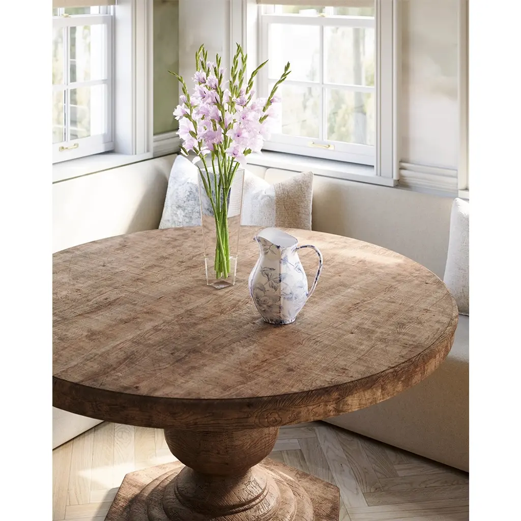 Robin French Brown Reclaimed Pine Wood Round Pedestal Dining Table - 59''w