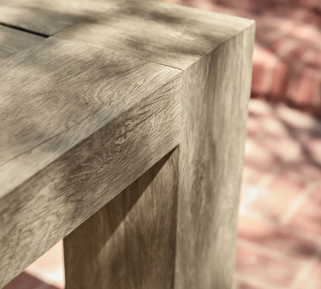 Rockport's rustic modern aesthetic combines sleek lines with innovative heat-transferred aluminum. This material mimics the gorgeous grain of wood but is lightweight, low maintenance, and durable—giving you the warmth of wood without the upkeep.