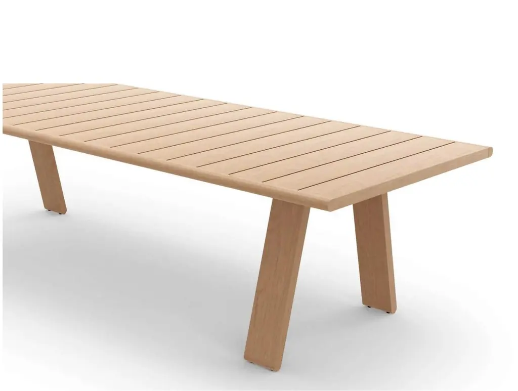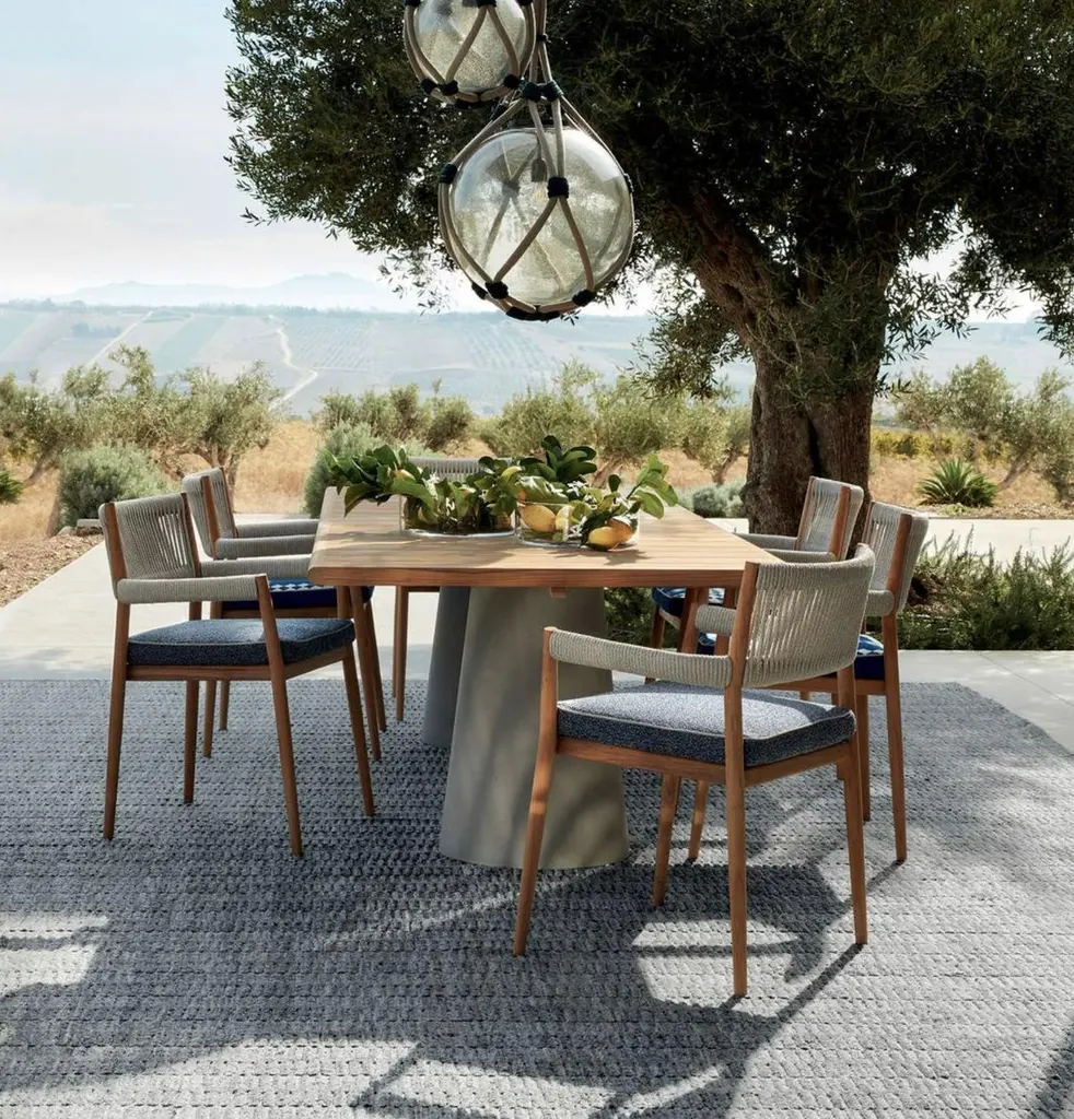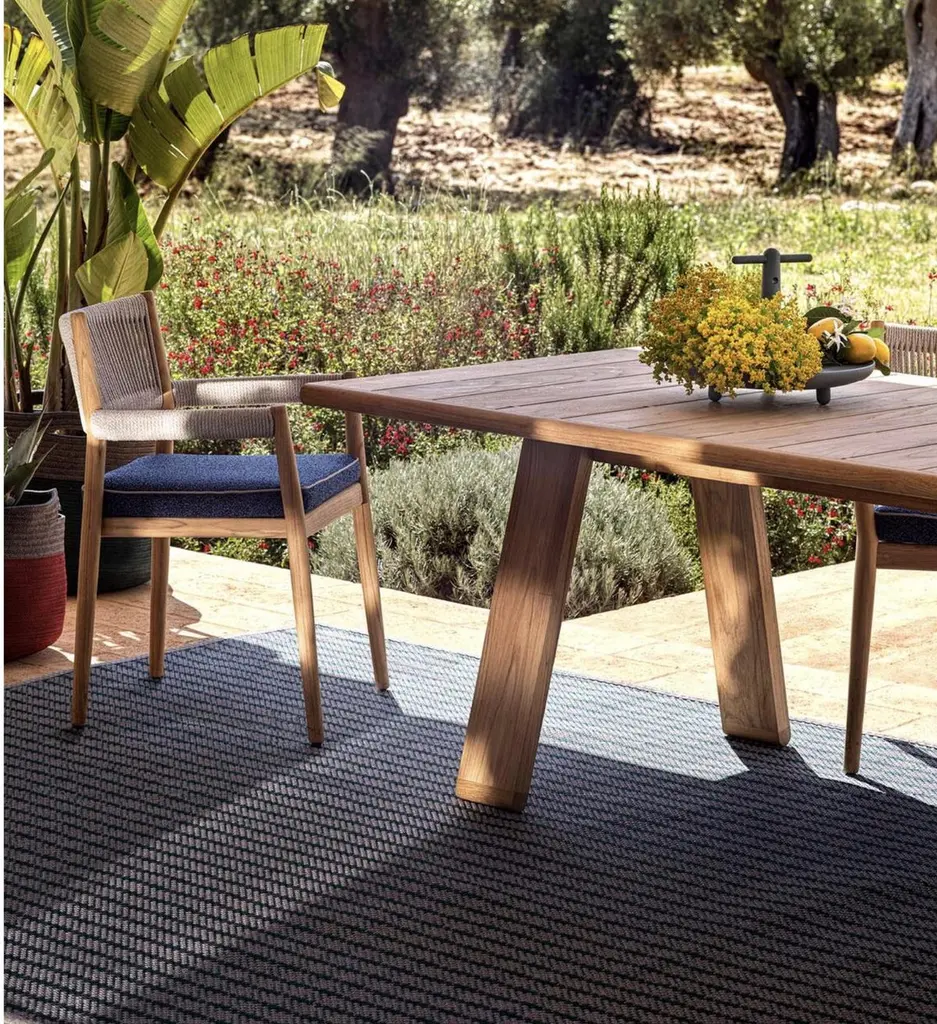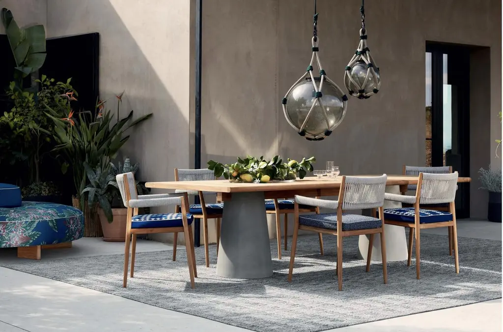 Rodolfo Dordoni Dine Out 477 Table For Cassina Sophisticated style is the hallmark feature of the Dine Out family of tables designed for the outdoors by Rodolfo Dordoni.The rectangular version with teak top can be supported by four legs in the same finish or by two conical bases in concrete or terrazzo. Dine Out also come in a low table version inspired by the concept of informal dining around the pool or in the garden.STRUCTUREConical bases in concrete or terrazzo, or four legs in natural teak.TOPConcrete, terrazzo or natural teak.Sophisticated style is the hallmark feature of the Dine Out family of tables. The round table is made up of a single conical base in concrete with concrete top, or with base in yellow-white or green-white terrazzo with top in the same material. A contrasting teak table top is available for all the bases. In addition to the original base with two conical elements in concrete, yellow-white terrazzo or green-white terrazzo, the rectangular table is also available with four teak trestle-style legs. The top is always in solid teak. Dine Out expands with a new version inspired by the concept of informal dining, perfect for a poolside aperitif or a casual lunch in the garden. The tables also come with raised adjustable feet that allow them to be positioned more easily outdoors.Important information regarding images of products:Please note that some of the images show other colors and variations of the model, these images are only to present interior design proposals. The item that is selling is on the first image.Important information regarding color(s) of products:Actual colors may vary. This is due to the fact that every computer monitor, laptop, tablet and phone screen has a different capability to display colors and that everyone sees these colors differently. We try to edit our photos to show all of our products as life-like as possible, but please understand the actual color may vary slightly from your monitorAbout The Designer: Born in 1954, member of the Milanese tradition that generated designers such as Castiglioni, Zanuso, Magistretti and de Lucchi, graduated in architecture at the Politecnico of Milan in 1979. Since then, he has designed for most of the leading names in the furniture and lighting sectors. For some of these, as head of design, he sets and co-ordinates the strategy of the product. Since years, he worked as a designer and a consultant for high level brands, for product design with Artemide and Moroso, and for shops, showrooms and exhibitions with Panasonic and Dolce & Gabbana. He also designs housing projects, villas, industrial buildings, restaurants and hotels both in Italy and worldwide. In 2005 he founded, with Alessandro Acerbi and Luca Zaniboni, the Dordoni Architects Studio, which is dedicated specifically to architectural planning and interior design.About The Manufacturer:Established in 1927 by Cesare and Umberto Cassina in Meda, Italy, Cassina launched industrial design in Italy in the 1950s, based on a totally innovative approach that marked the transition from artisan production to mass production. With a mindset focused on research and innovation, Cassina combines technology and long-standing artisan craftsmanship. Memory, research, innovation. Cassina blends traditional skills and superior productivity, meticulous attention to detail and passion, uniqueness and experimentation, wellbeing and sustainability. Today, the company continues to address new lifestyles with the creation of complete, harmonious interior decor solutions that embody the best contemporary design for all areas of the home.