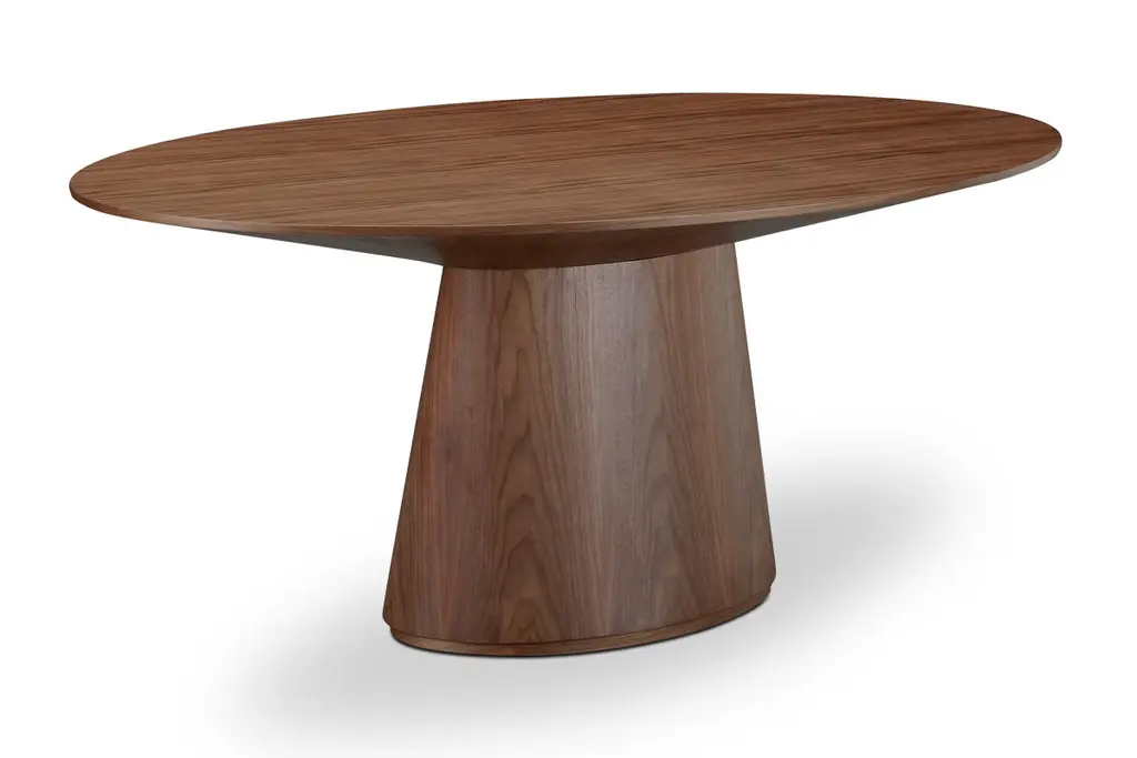 Introduce modern, effortless style to your dining room with the Rogers Oval Dining Table. The simple, flared base and minimalist silhouette let the table's finish take the visual spotlight – available in walnut, oak or white high gloss to best suit your individual style. The large, oval design comfortably accommodates up to six people and makes a statement in larger dining spaces.