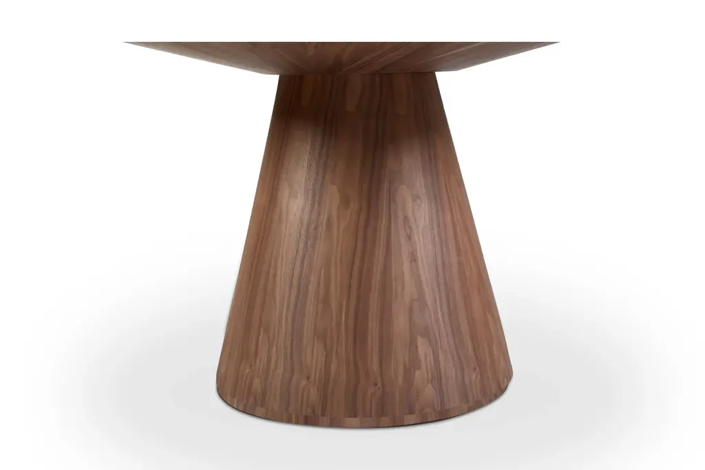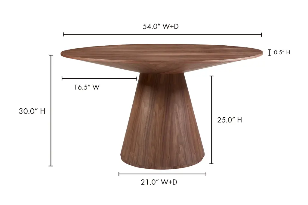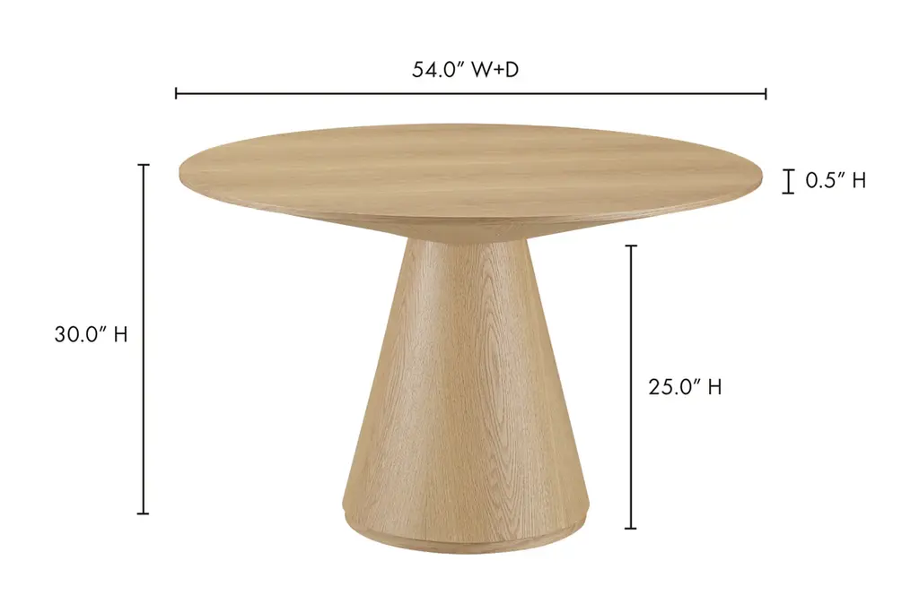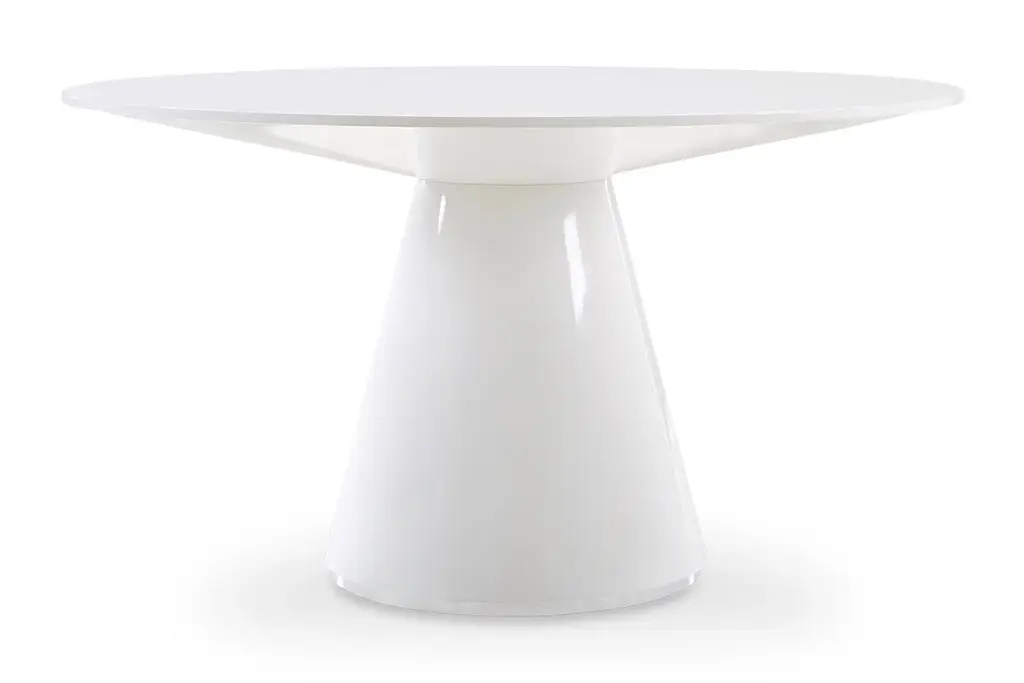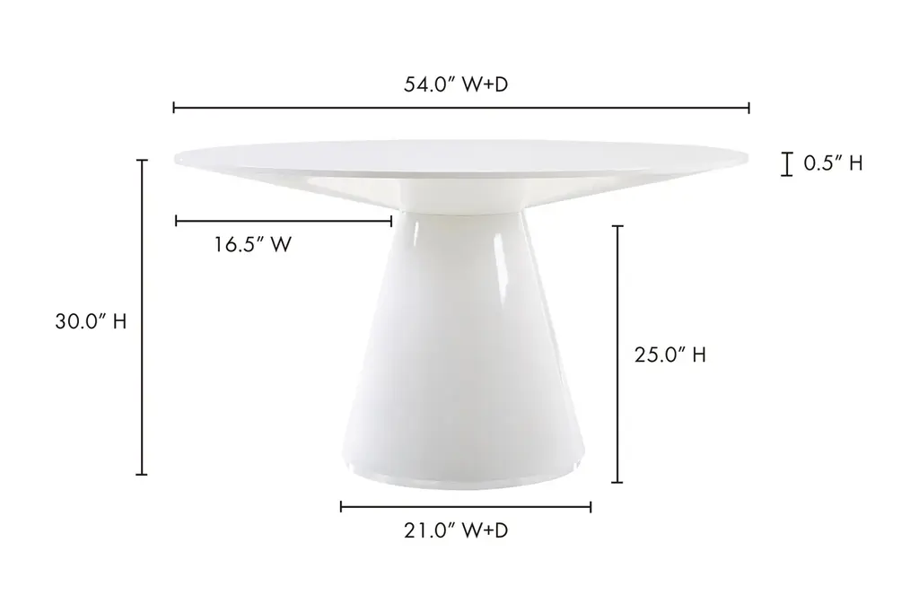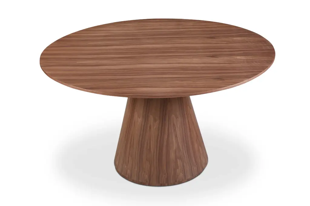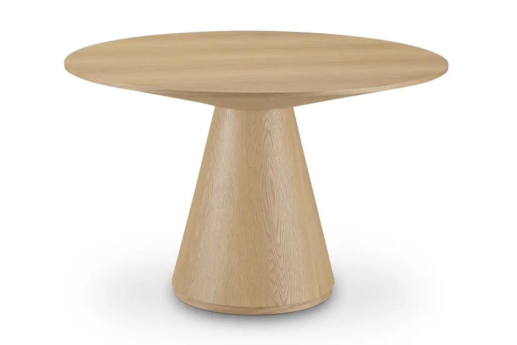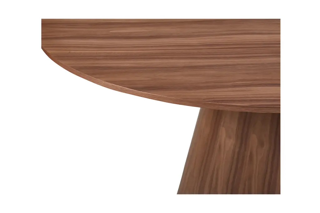 Introduce modern, effortless style to your dining room with the Rogers Large Round Dining Table. The simple, flared base and minimalist silhouette let the table's finish take the visual spotlight – available in oak, walnut, or white high gloss to best suit your individual style. The large circular design anchors your space with its symmetrical look and comfortably accommodates up to five people.