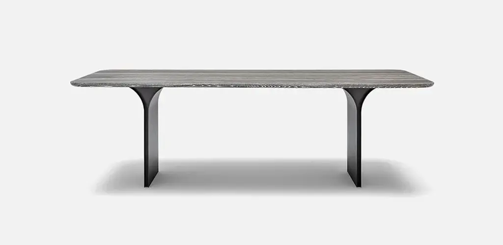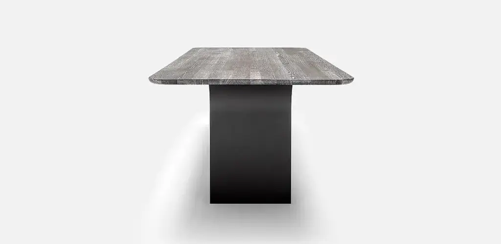 The Rolf Benz 990 dining table gives pure elegance a modern look that you can combine in any way you like. Clear and delicate – Rolf Benz 990 brings both these properties to the table. The brushed, stained or optionally limed oak table top with a distinctive feel seems to float on narrow, powder-coated panels in Black or Umbra grey. These open up like a flower towards the table top. Soft radii along the edges form an exciting contrast with the solid weightiness of the oak wood. They taper from the table top to the underside and feel extremely pleasant to the touch. With its inset panels, the dining table provides enough space for guests to sit and stand up comfortably. This makes it ideal for use with bench seats. The table has a linear appearance and forms a harmonious ensemble with any of the chairs from the Rolf Benz collection. By the way: As an alternative to the rustic versions in oak, Rolf Benz 990 is also available with a solid walnut table top (optionally oiled).Table top:• Solid wood, clear varnish, optionally:- Brushed oak- Brushed oak, stained black- Brushed oak, smoked pigmented- American walnut- Brushed oak, limed- Brushed oak, stained black, limed- Brushed oak, smoked pigmented, limed• Solid wood, oiled:- American walnutFrame:• Steel, fine structure, matt powder-coated, optionally:- RAL 7022 Umbra grey- RAL 9017 Traffic black