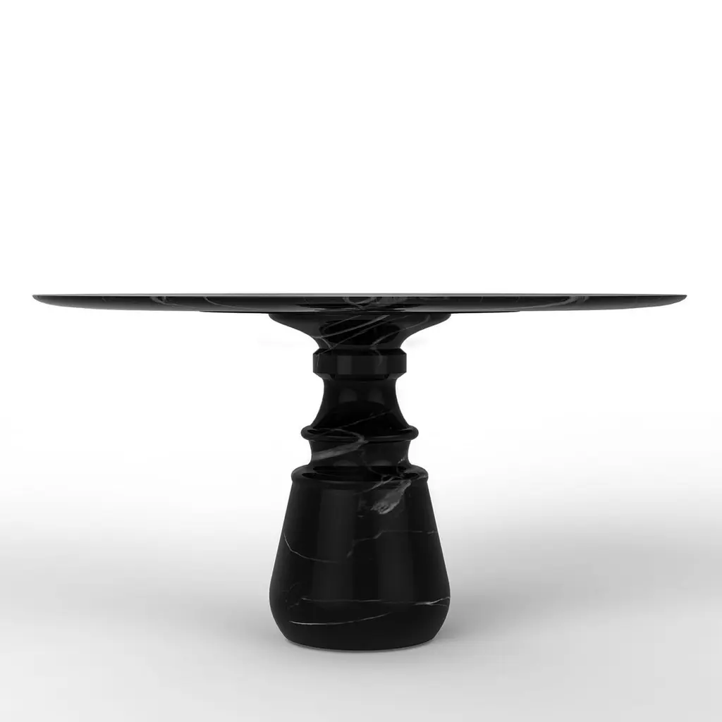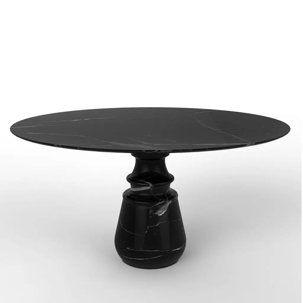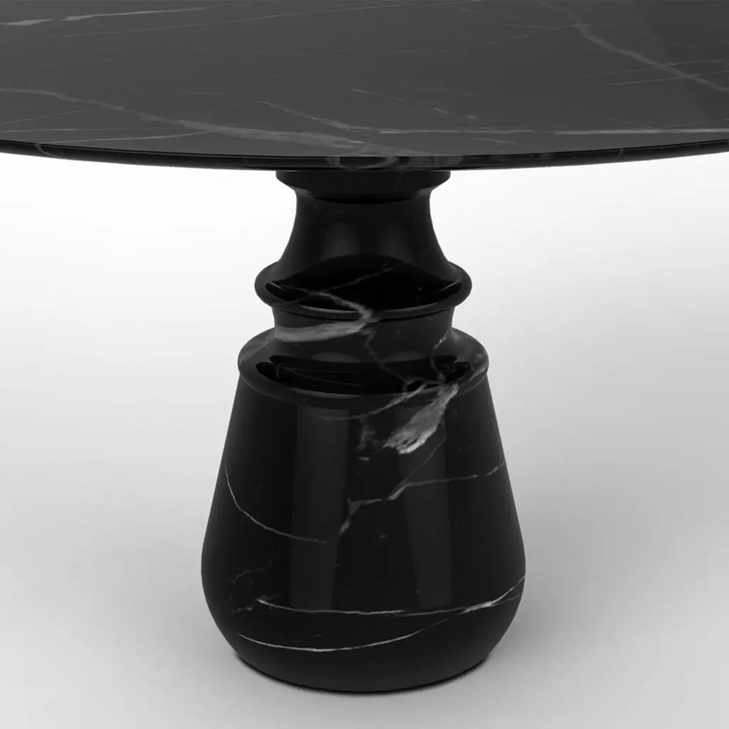 Dinning Table Black Round Roma with all structure in carved black marble in polished finish.Also Available on request in Roma Round White Marble Dining Table