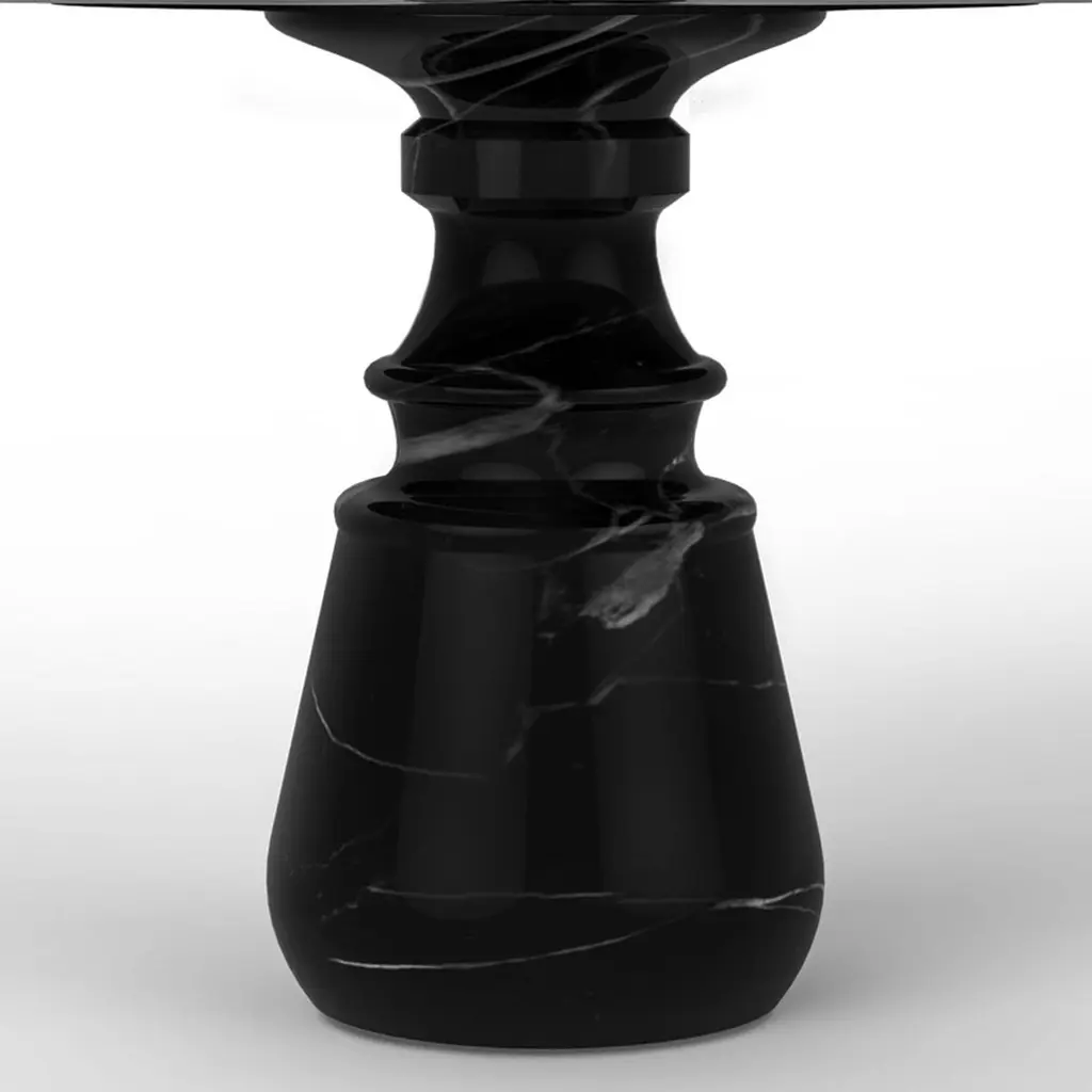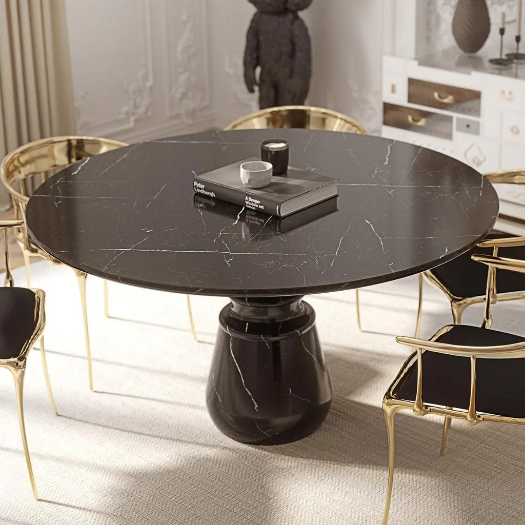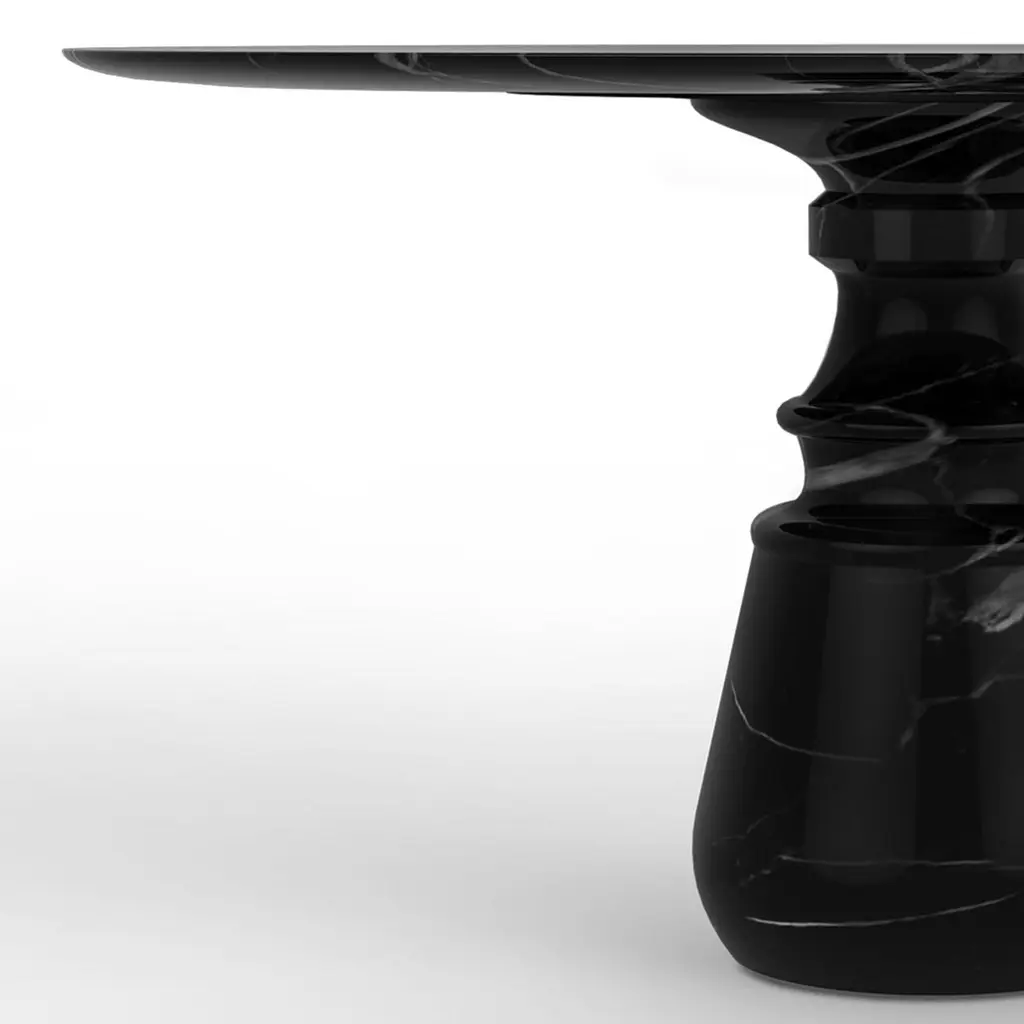 Dinning Table Black Round Roma with all structure in carved black marble in polished finish.Also Available on request in Roma Round White Marble Dining Table