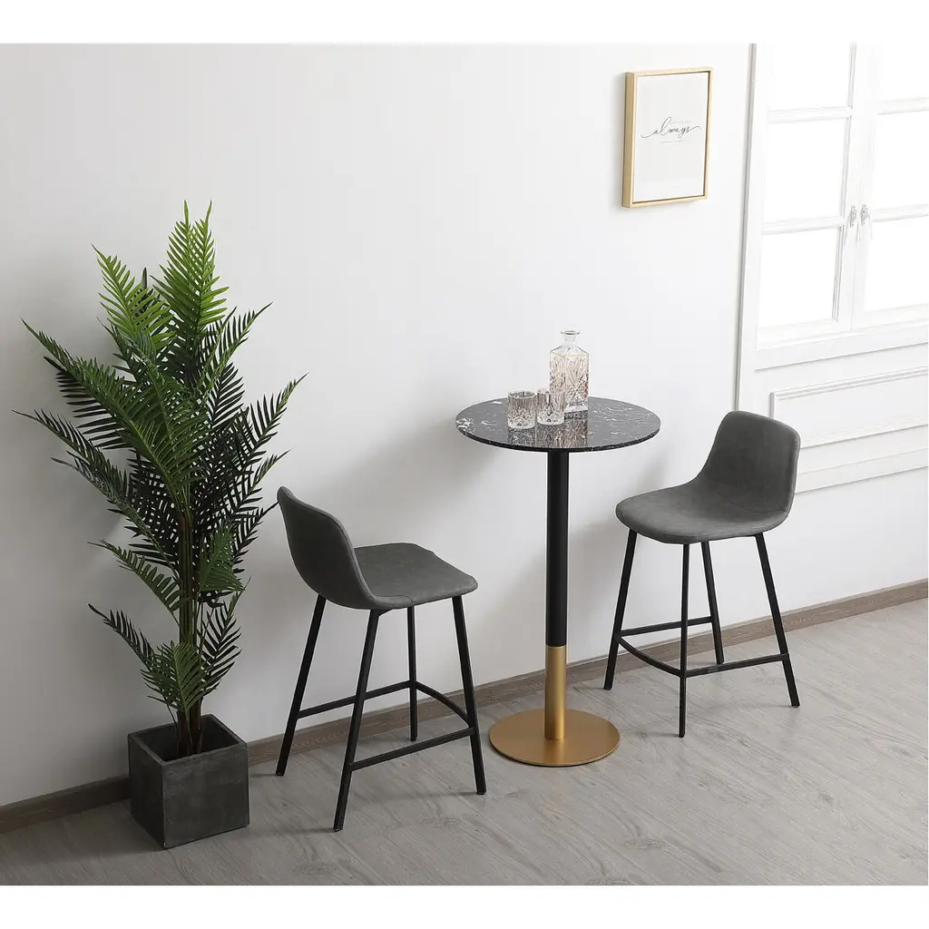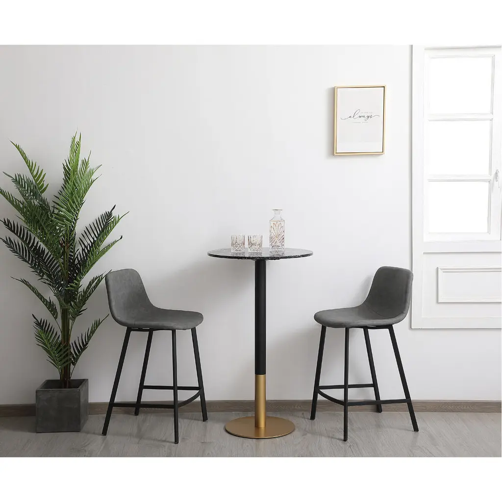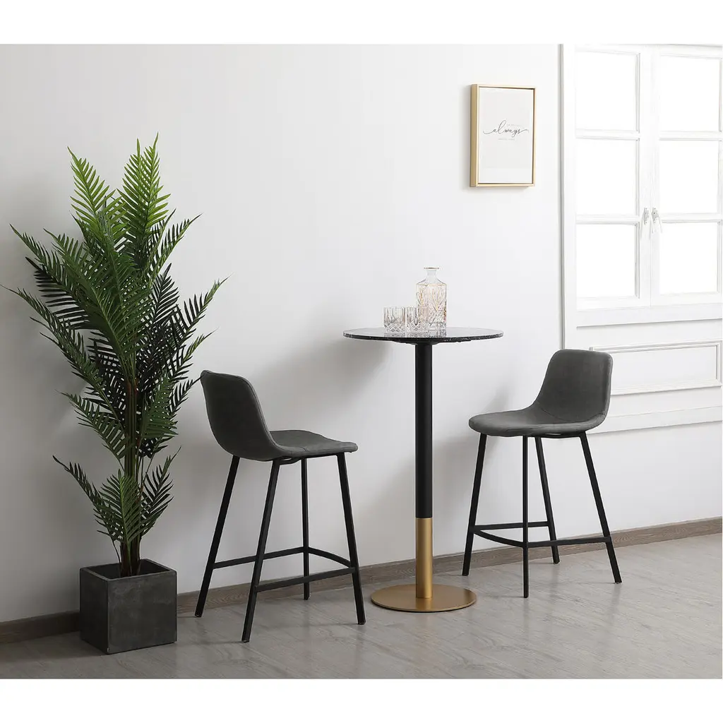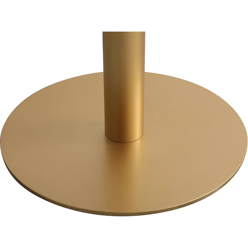 The Ronan pub table makes a nice addition to your home. This pub table provides additional dining space in your kitchen. Features a matte brass base that is accented with black metal stand and a faux marble top. The table top is 23.5 inch wide making it big enough for two but still small enough to use the space economically.