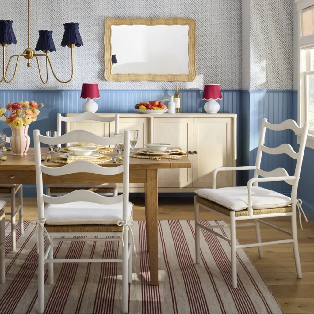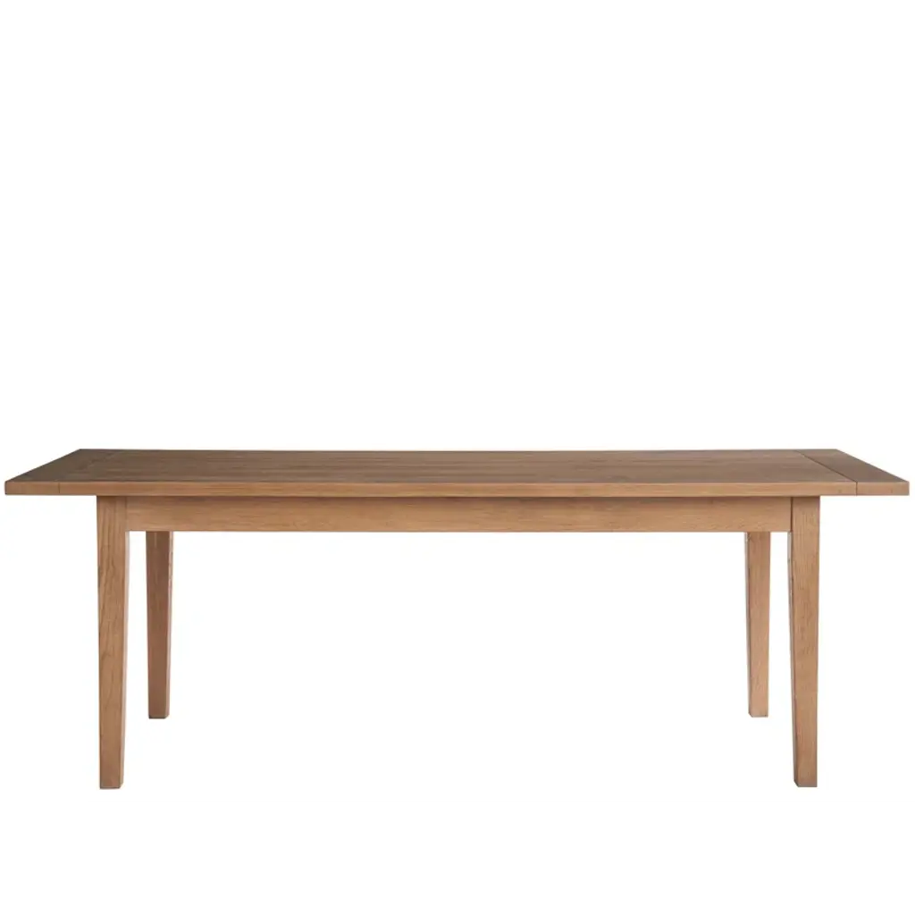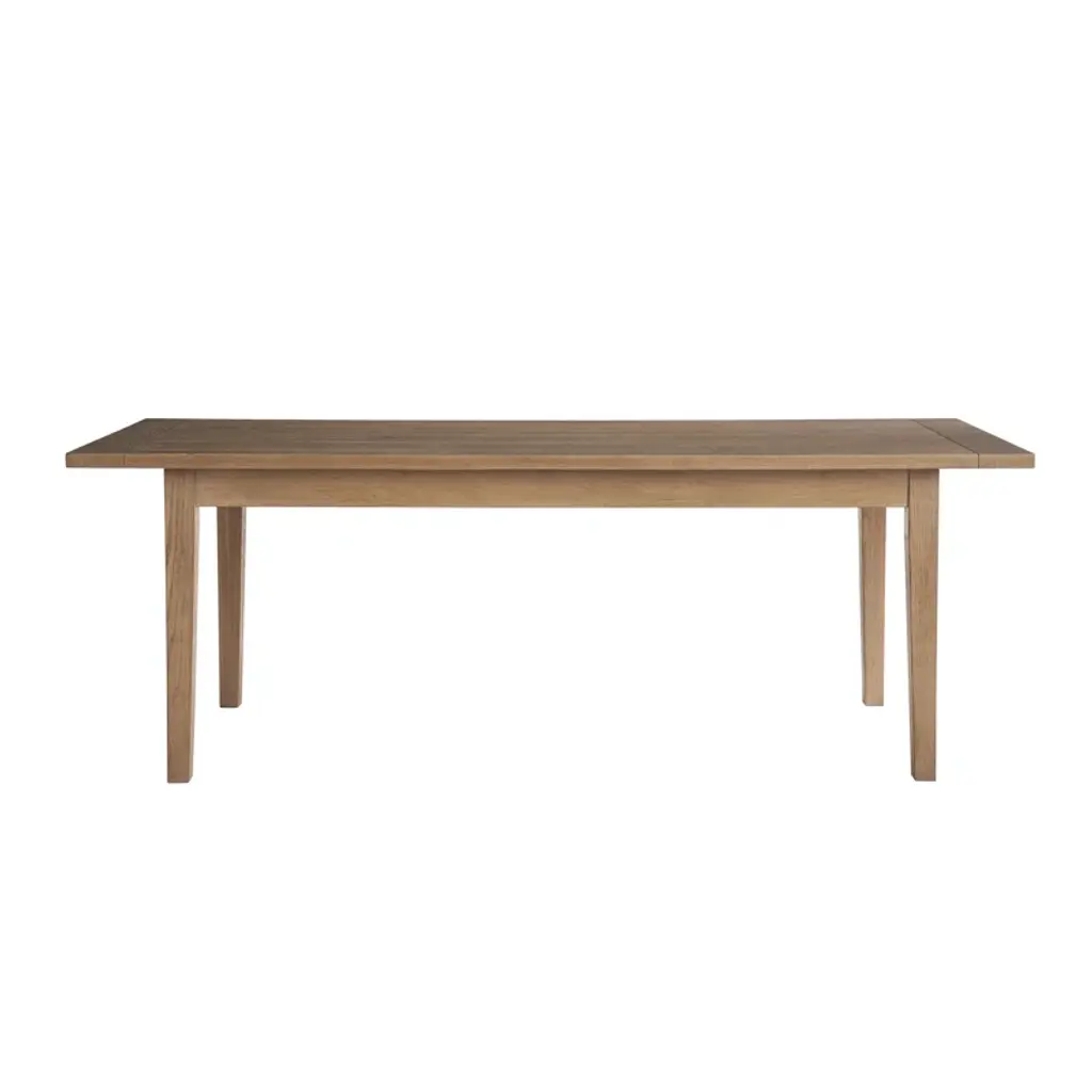 With a slight nod to mid-century modern design, the marblehead dining table anchors interiors with subtle details paired with a knotty oak finish.