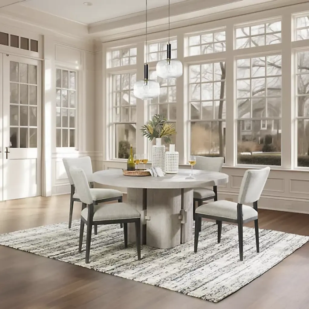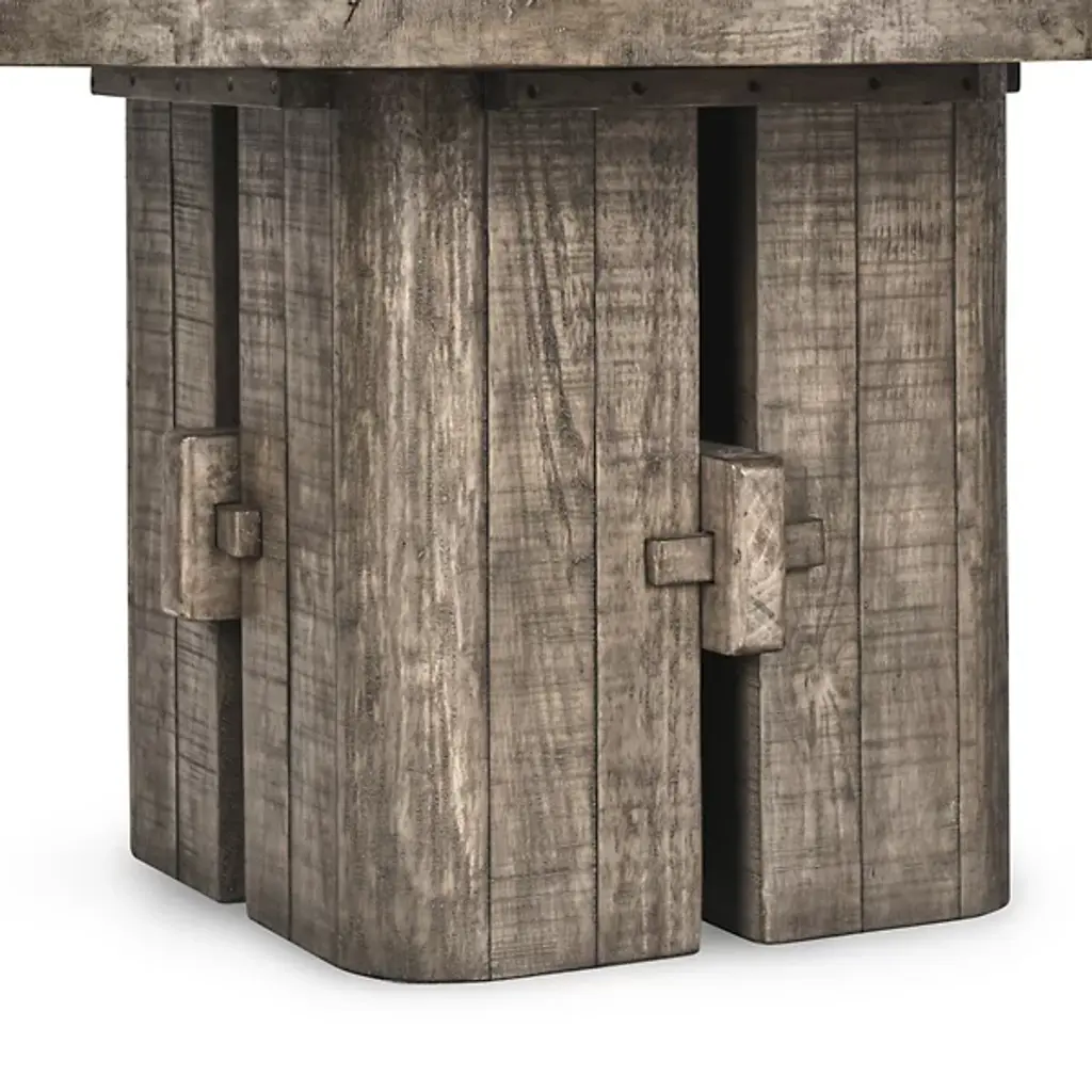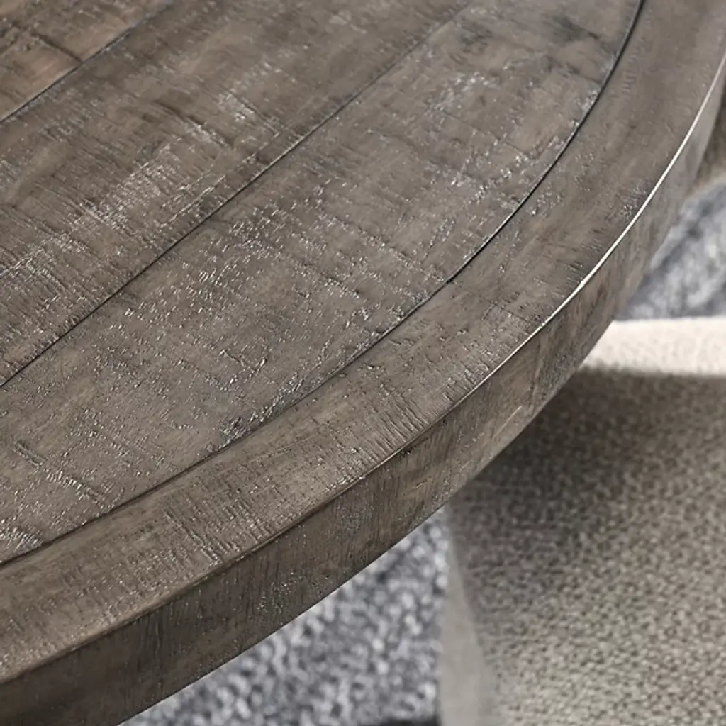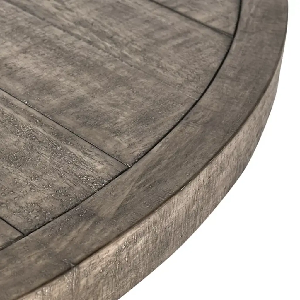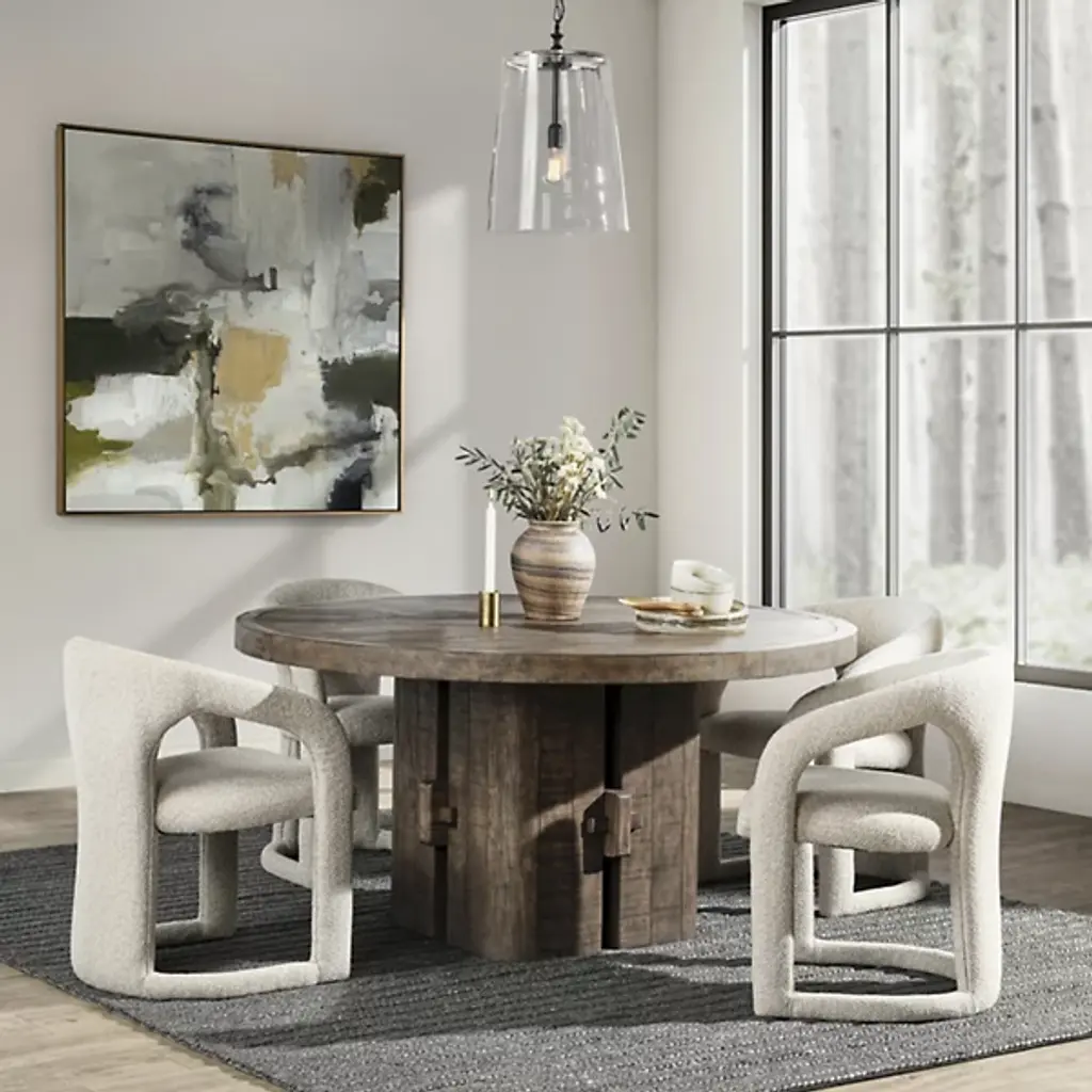 Transform your dining spaces with the Rosemount Dining Table from Classic Home. This striking piece features a distinctive base of gathered vertical beams supporting a round top, all crafted from FSC-certified reclaimed pine. The bold architectural design is distinctive, merging contemporary styling with rustic warmth, creating an unforgettable gathering place.