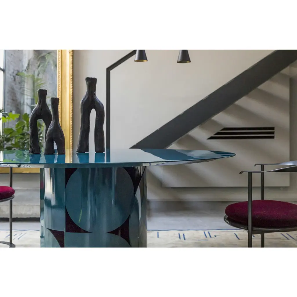Add a touch of luxury to your living room with the Round Central-Base Coffee Table from Mogg Shape. With a stylish perforated metal base and a choice of matte or glossy lacquered finishes, this table brings sophistication and elegance to any room. The central leg provides strong, aesthetically balanced support, adding personality to your space.