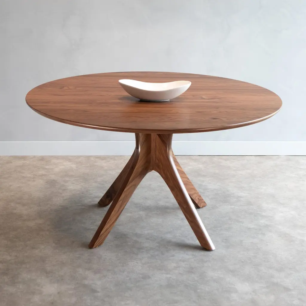 Round Dining Table 60" With Pedestal Base, Handmade, Midcentury Style, Walnut