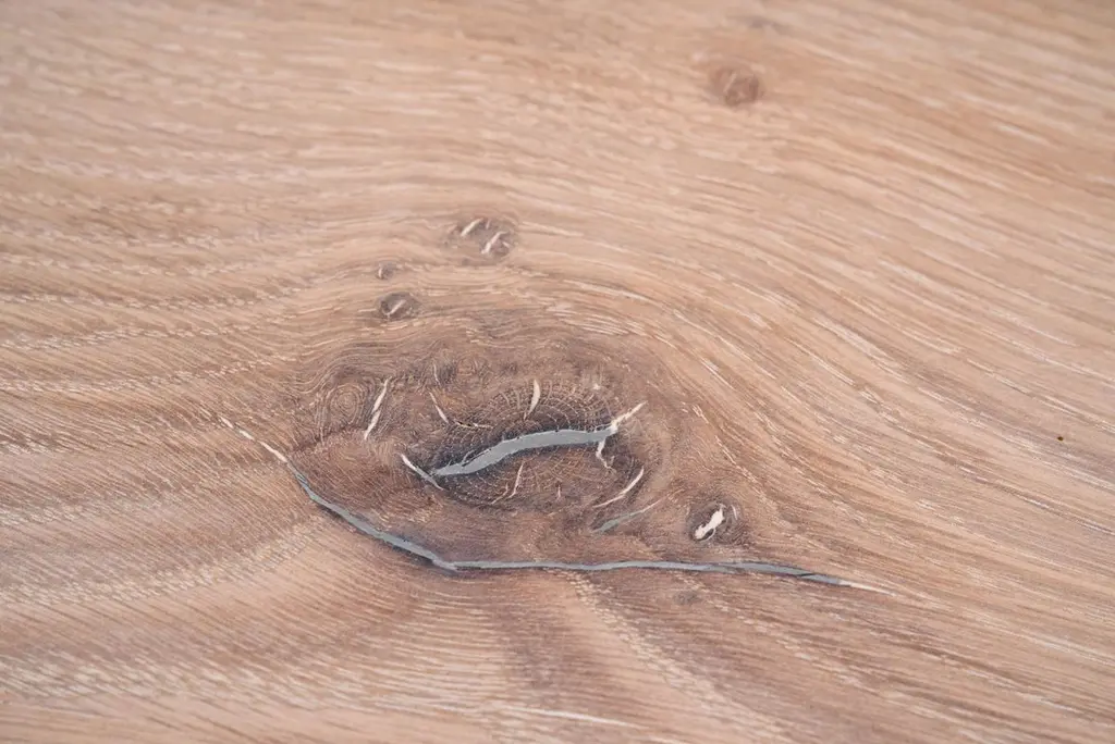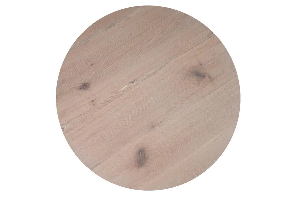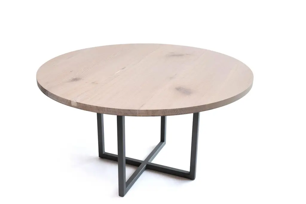 Round Dining Table in Light Wood and Pewter Modern Steel Pedestal Base is a variation of our sunrise base. Urban white oak with a white finish and unique pewter fills, emphasizes it casual and refined feel, begging you to touch and enjoy. The pedestal table unifies the family for a meal without pesky table legs getting in the way. Gather around and catch up with relatives in the dining room. Plan a family vacation. Carve a turkey. Urban hardwood means the wood is highly figured and it's eco-friendly. Expert, American craftsmanship means it's tomorrow's heirloom.Urban wood has character. Character can include variations in color and grain, small pin knots, evidence of historical intrusion. There may be cracks or knots that we fill, patch or join in a considered and artful way at the makers discretion. We look at every slab and decide what needs a patch or epoxy or both. Case by case, one may be more effective and better for the furniture, aesthetically, structurally, and for our process. If a specific tool, like a patch, is not desired, please specify this when ordering. This may require procuring different lumber which can alter costs.