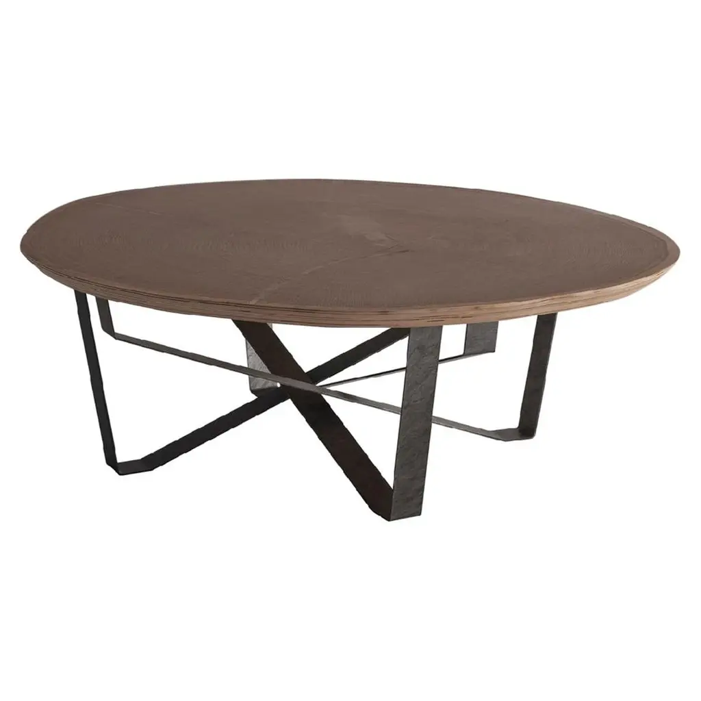 Round Dining Table In Light Wood And Pewter Modern Steel Pedestal Base (72")