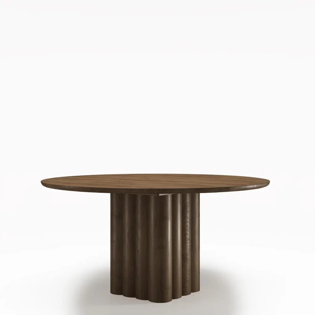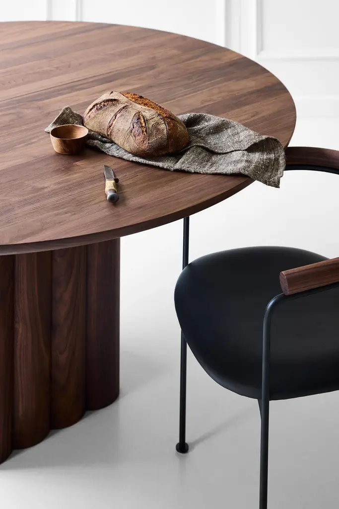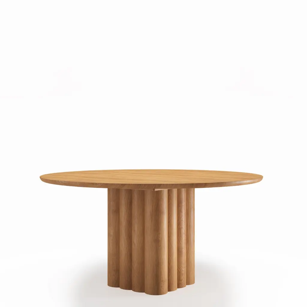 PLUSH dining table, round, 150 cm.Solid wood table top and legs. Handmade in Denmark. Signed by Jacob Plejdrup for DK3Table's height: 72 or 74 cmSold model: Natural Oak (oil treatment)Cube base: 46x46 cmTable top Thickness: 30 mm(Extraction for max. 2 extensions leaves)Table top dimensions:– 140 cm– 150 cm– 160 cmWood:– Light oak– Smoked oak– WalnutPrice may vary according to the wood type and size. --Plush tableDesign by Jacob Plejdrup, 2023.dk3 was among the first brands to introduce the plank table to the Scandinavian market back in 2009, and with the aim to take this design heritage to the next level, dk3 founder Jacob Plejdrup has developed the anniversary table Ten table in cooperation with Danish designer Christian Troels. The designs of Christian Troels are characterized by a great level of details and craftsmanship accuracy, which, in the Ten table, is perfectly merged with Jacob Plejdrup's basic ideas on large dining tables, such as highlighting the natural beauty of wood in a minimalistic way.