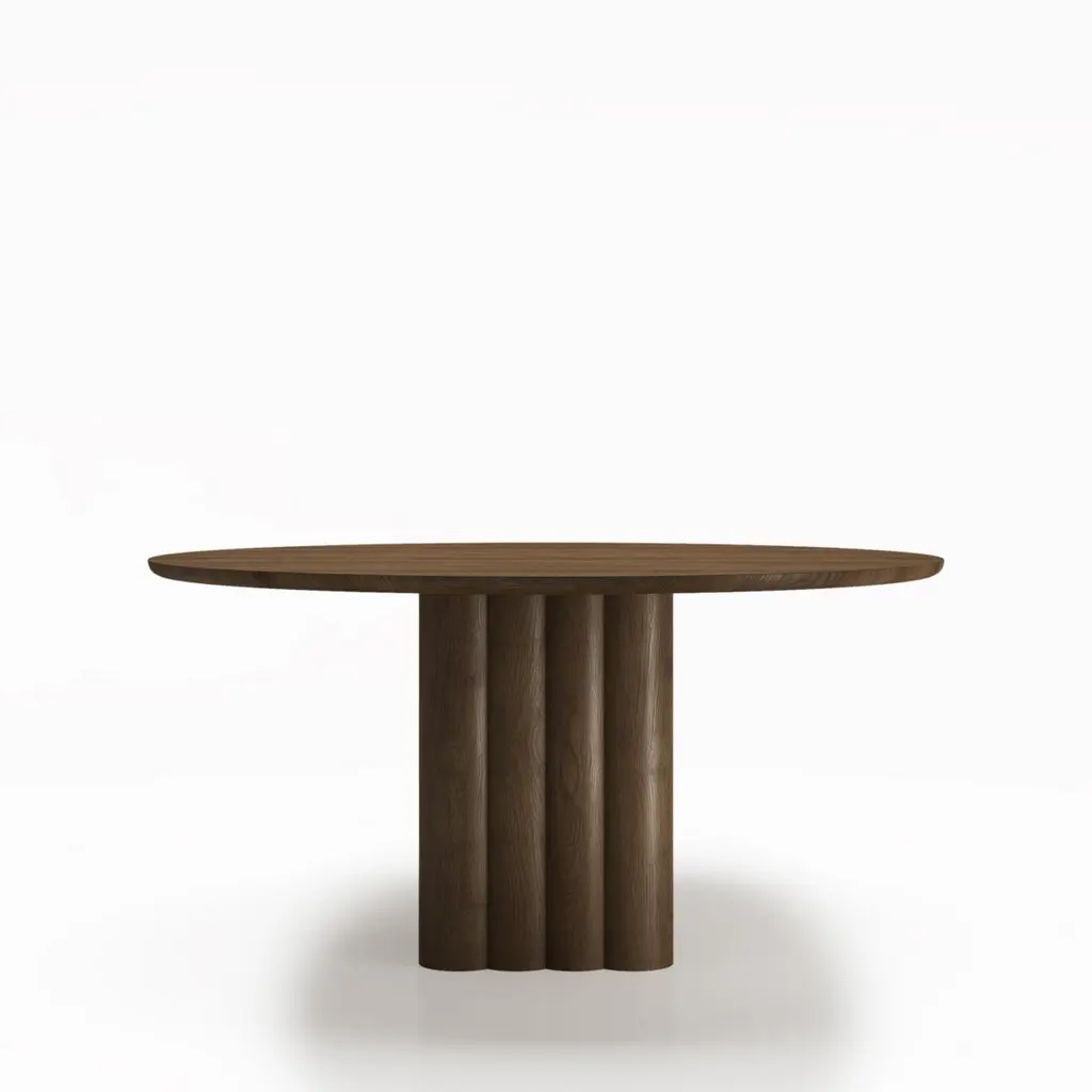 PLUSH dining table, round, 140 cm.Solid wood table top and legs. Handmade in Denmark. Signed by Jacob Plejdrup for DK3Table's height: 72 or 74 cmModel shown on main picture: RoundSmoked OakCube base: 46x46 cmTable top Thickness: 30 mm(Extraction for max. 2 extensions leaves)Table top dimensions:– 140 cm– 150 cm– 160 cmWood:– Light oak– Smoked oak– WalnutPrice may vary according to the wood type and size. --Plush tableDesign by Jacob Plejdrup, 2023.dk3 was among the first brands to introduce the plank table to the Scandinavian market back in 2009, and with the aim to take this design heritage to the next level, dk3 founder Jacob Plejdrup has developed the anniversary table Ten table in cooperation with Danish designer Christian Troels. The designs of Christian Troels are characterized by a great level of details and craftsmanship accuracy, which, in the Ten table, is perfectly merged with Jacob Plejdrup's basic ideas on large dining tables, such as highlighting the natural beauty of wood in a minimalistic way.