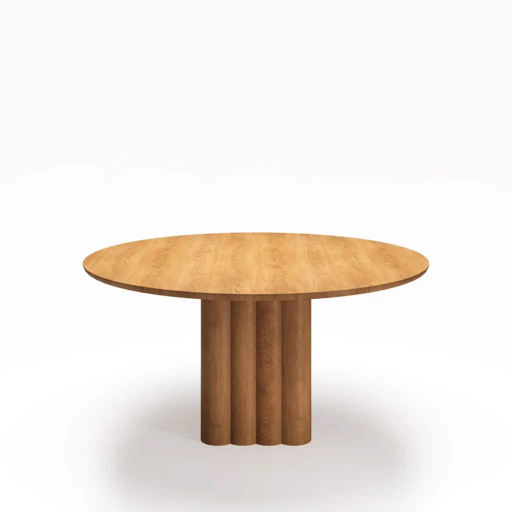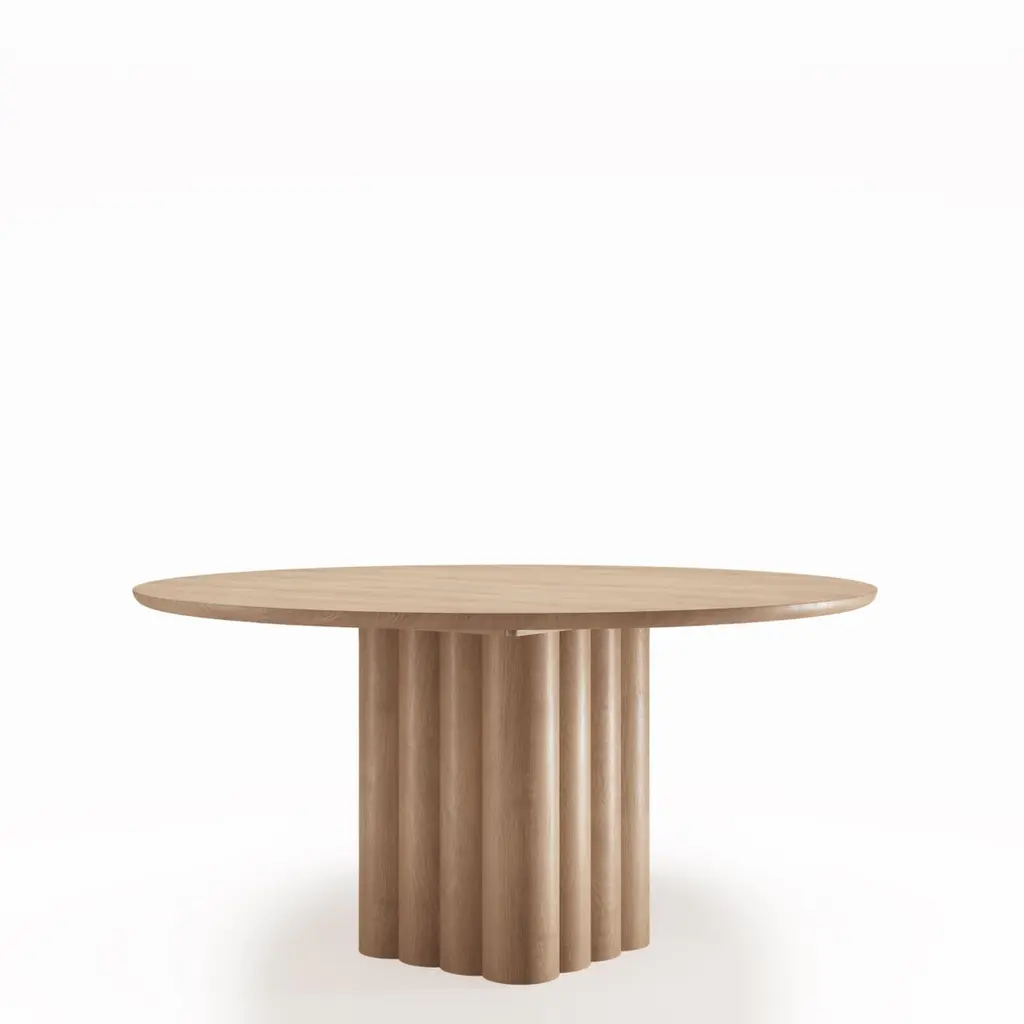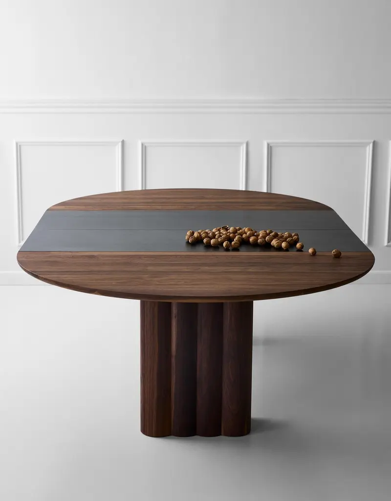 PLUSH dining table, round, 150 cm.Solid wood table top and legs. Handmade in Denmark. Signed by Jacob Plejdrup for DK3Table's height: 72 or 74 cmModel shown on main picture: RoundSmoked OakCube base: 46x46 cmTable top Thickness: 30 mm(Extraction for max. 2 extensions leaves)Table top dimensions:– 140 cm– 150 cm– 160 cmWood:– Light oak– Smoked oak– WalnutPrice may vary according to the wood type and size. --Plush tableDesign by Jacob Plejdrup, 2023.dk3 was among the first brands to introduce the plank table to the Scandinavian market back in 2009, and with the aim to take this design heritage to the next level, dk3 founder Jacob Plejdrup has developed the anniversary table Ten table in cooperation with Danish designer Christian Troels. The designs of Christian Troels are characterized by a great level of details and craftsmanship accuracy, which, in the Ten table, is perfectly merged with Jacob Plejdrup's basic ideas on large dining tables, such as highlighting the natural beauty of wood in a minimalistic way.