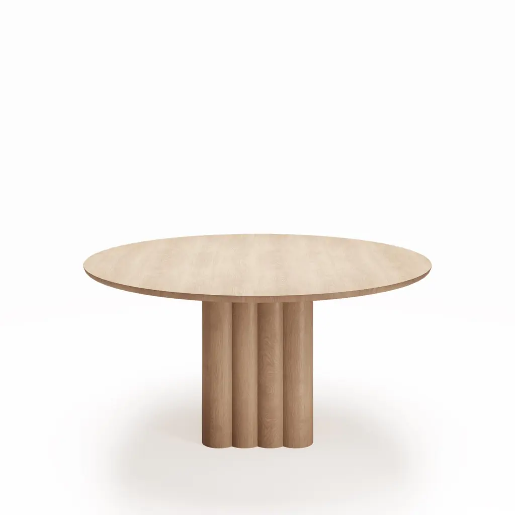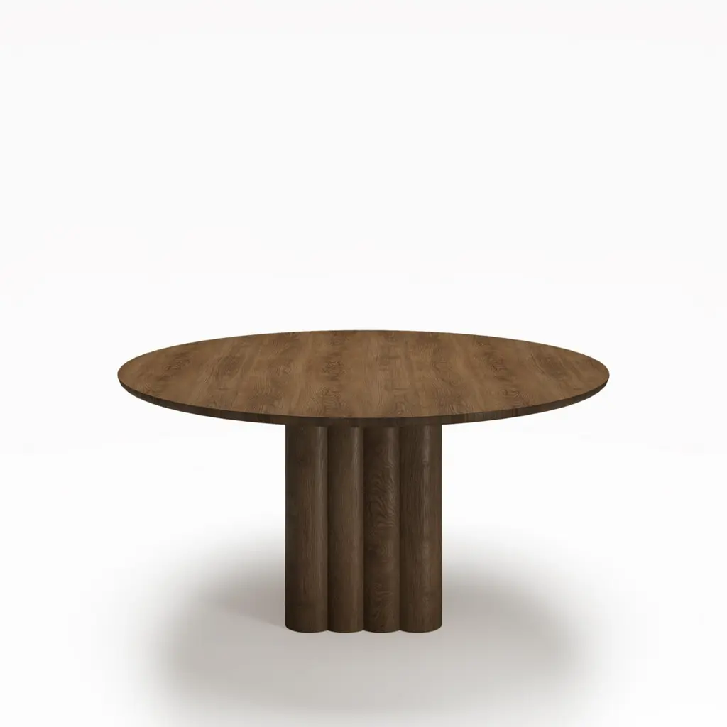 PLUSH dining table, round, 160 cm.Solid wood table top and legs. Handmade in Denmark. Signed by Jacob Plejdrup for DK3Table's height: 72 or 74 cmSold model: Smoked OakCube base: 46x46 cmTable top Thickness: 30 mm(Extraction for max. 2 extensions leaves)Table top dimensions:– 140 cm– 150 cm– 160 cmWood:– Light oak– Smoked oak– WalnutPrice may vary according to the wood type and size. --Plush tableDesign by Jacob Plejdrup, 2023.dk3 was among the first brands to introduce the plank table to the Scandinavian market back in 2009, and with the aim to take this design heritage to the next level, dk3 founder Jacob Plejdrup has developed the anniversary table Ten table in cooperation with Danish designer Christian Troels. The designs of Christian Troels are characterized by a great level of details and craftsmanship accuracy, which, in the Ten table, is perfectly merged with Jacob Plejdrup's basic ideas on large dining tables, such as highlighting the natural beauty of wood in a minimalistic way.