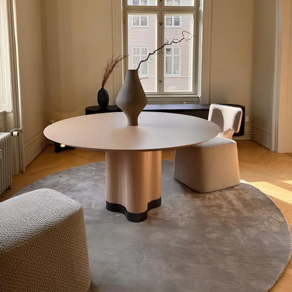 Stylish and versatile piece that combines innovative design with high-quality materials:Key features includes:Base: The base in wood, lacquer or metal lacquer. visually appealing and unique sculptural pedestal.Top: The tabletop is available in a variety of solid wood and marble colors and finishes. The combination of the sculptural base and the choice of premium wood for the top gives it a sophisticated and modern look.Customization:The customizable nature of the tabletop and base materials ensures that it can complement a wide range of interior styles and color schemes.Whether used in a formal dining room or a more casual setting, the table's design and quality construction make it a versatile addition to any home.Quality and Craftsmanship:Handcrafted with attention to detail and a commitment to high-quality materials and construction techniques.Please contact us if you have any questions about customization and pricing. We will be glad to check with the factory’s technical team if sizes, finishes, and colors can be customized. We do our best to expedite production and to ship and deliver product within the listed lead time, however current lead times might be longer due to global shipping backlog and delays. These delays are out of our control and cannot be a reason to cancel an order.