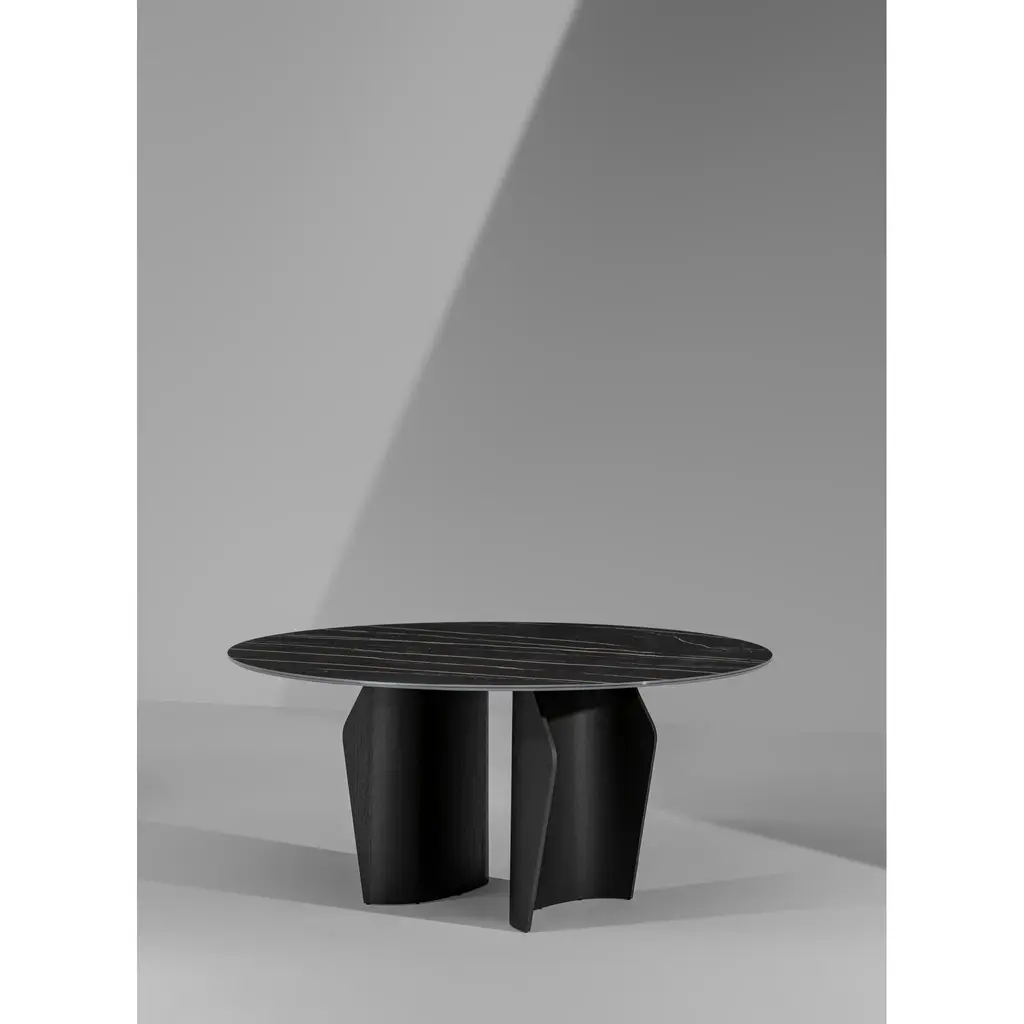 Flame's main features are its harmonious shapes and light, sinuous volumes. The top, which is visibly suspended, is fully usable thanks to the position of the double base designed to optimize the overall space. Form and function are perfectly expressed in this table: the extensive customization options allow you to arrange it according to your tastes, needs and the mood of the surrounding space. The top is available in a number of sophisticated finishes – from wood to ceramic and marble – and you can choose from various metal options for the base. A wooden base is also available for this modern living room table (Flame Wood).