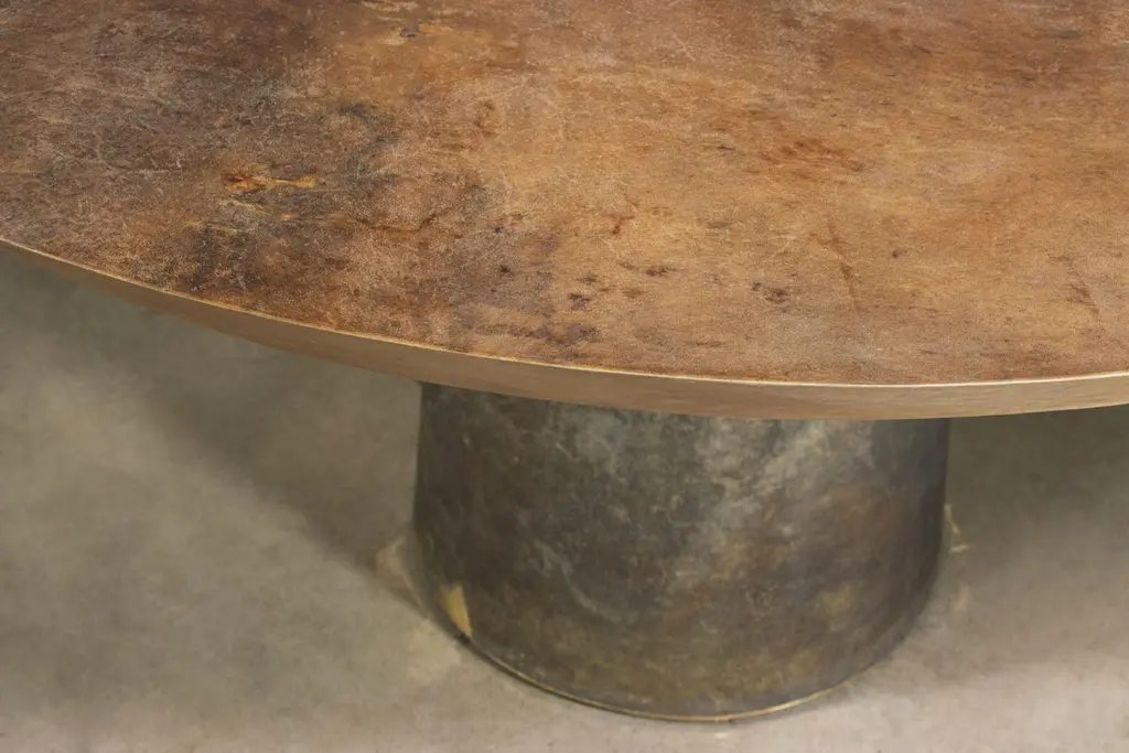 One-of-a-kind cast bronze base with a 60” round parchment top with knife edge. See it in person this week at Collectible New York, contact us for details. 60” Dia, 30” HAbout Costantini Design Costantini has been a trusted source for custom furniture, objects and lighting for a global client base since 2002. Its founder and owner, William Stuart, is a designer and artist who began his career as a multimedia artist and sculptor, practices which continue to inform the work. With a studio showroom in New York and a team of artisans at their own workshop in Buenos Aires, the Costantini team is able to connect artisans and artists with acclaimed clientele around the world. Its artisans work across many disparate materials such as bronze, solid wood, fiberglass, steel, plaster, goatskin, leather, rush, iron, marble, sheepskin and more. Visit their New York or Buenos Aires locations by appointment.