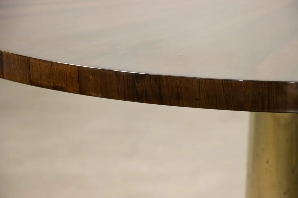 Round Exotic Wood Cast Bronze Pedestal Dining Table By Costantini, Benino