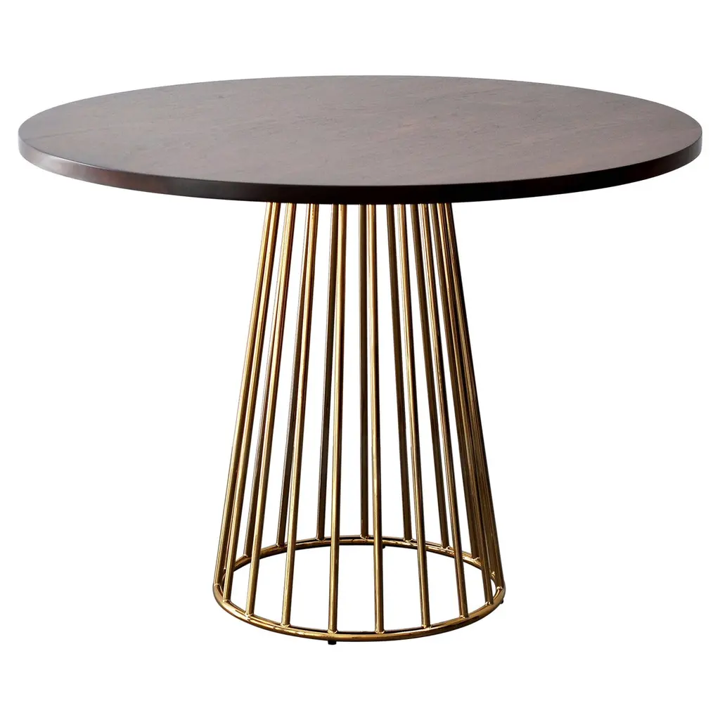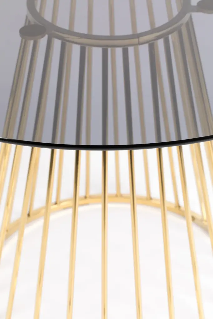 Flourishing in elegance, the round table Floris is anything but basic. A combination of a round smoked glass tabletop and a conical gilded pedestal base resulted in an artful furniture piece. Ready to elevate your space? Floris unflinchingly says yes.