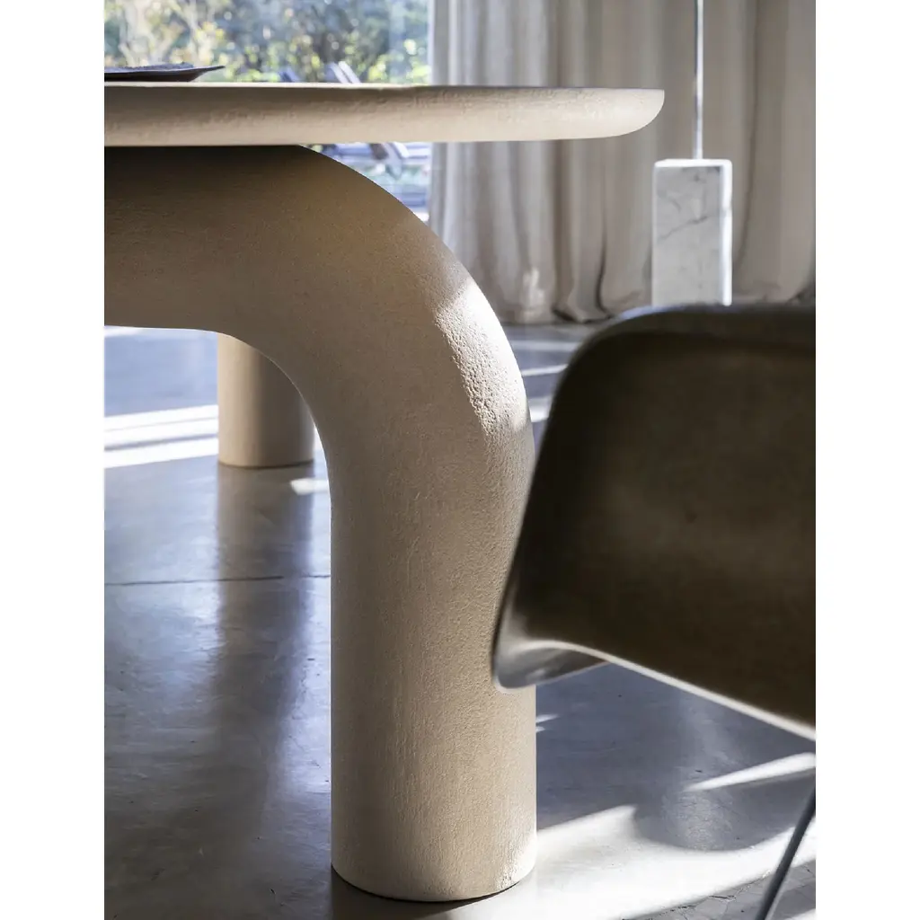 This sophisticated dining table exudes a strong and commanding presence, evoking an elegant and stable atmosphere. Its monumental design is both poetic and refined, with soft curves in its legs adding a touch of exclusive charm. Perfect for any setting, be it classic or contemporary.