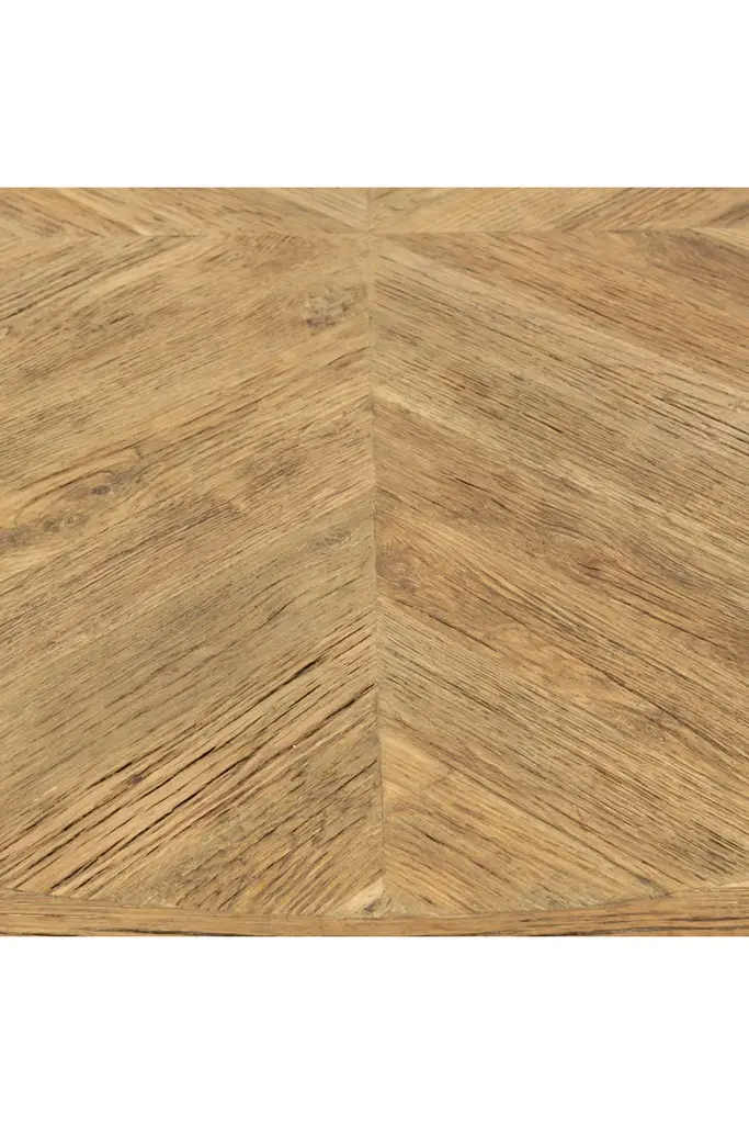 Dining together becomes even cozier at this Siroko Beach dining table. This round table is made of reclaimed oak. It has a hand-inlaid top, reminiscent of a classic castle floor, combined with a sleek conical leg. Tip: to care for this table, we have an RM Wood Care kit in our collection.