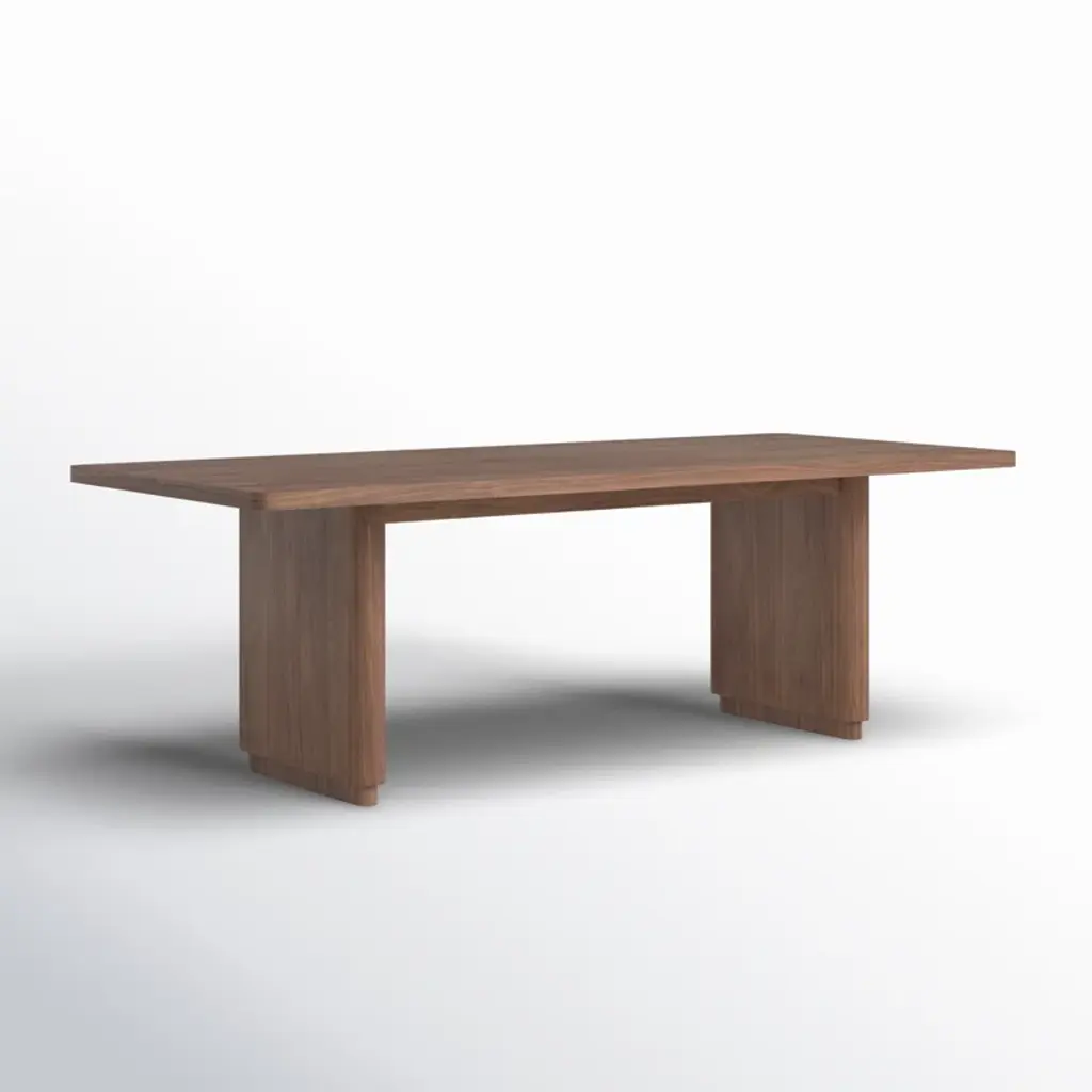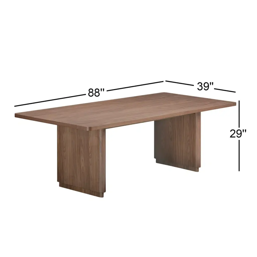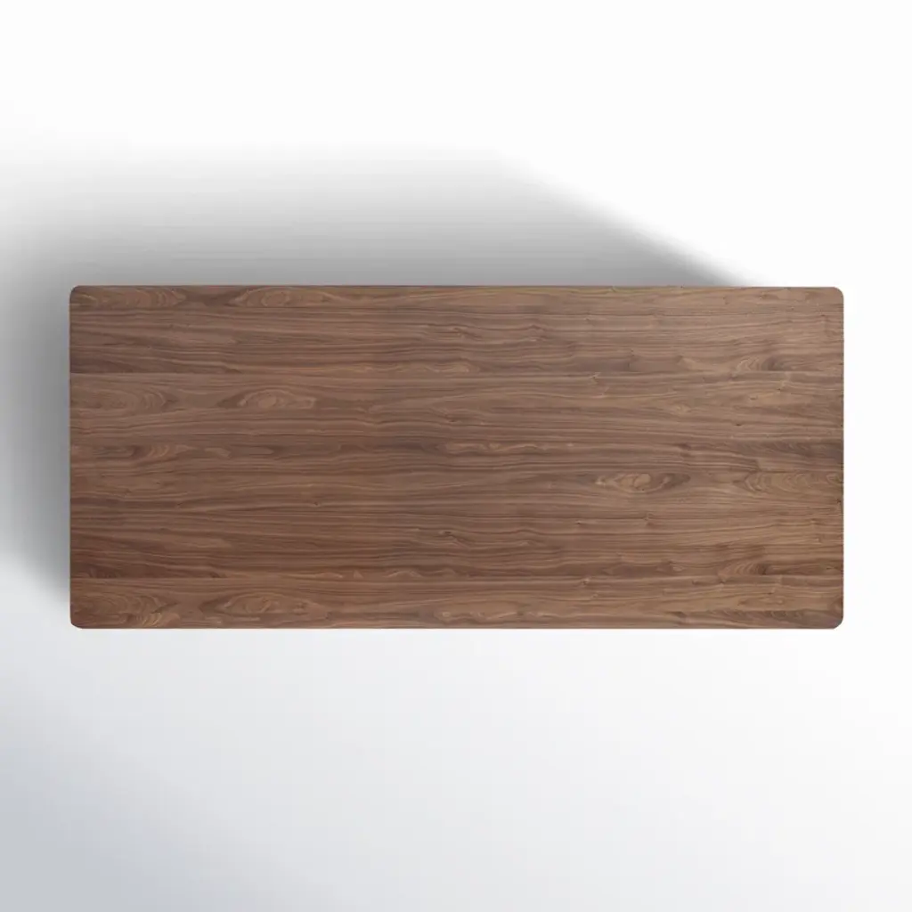 Natural allure meets minimalist design. The round-off small dining table celebrates the captivating tones of natural wood grain, seamlessly integrated into a soothing design, embracing natural beauty and character. This dining table boasts gently rounded corners and celebrates walnut's natural beauty and character.
