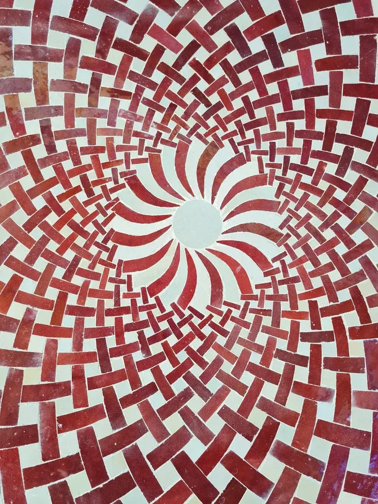 Round Red Striped Fractal Mosaic Table Moroccan Decor Art