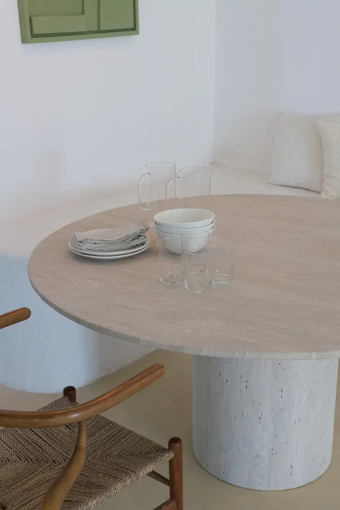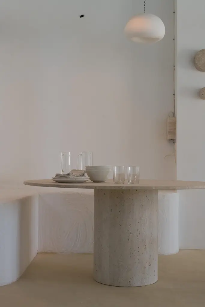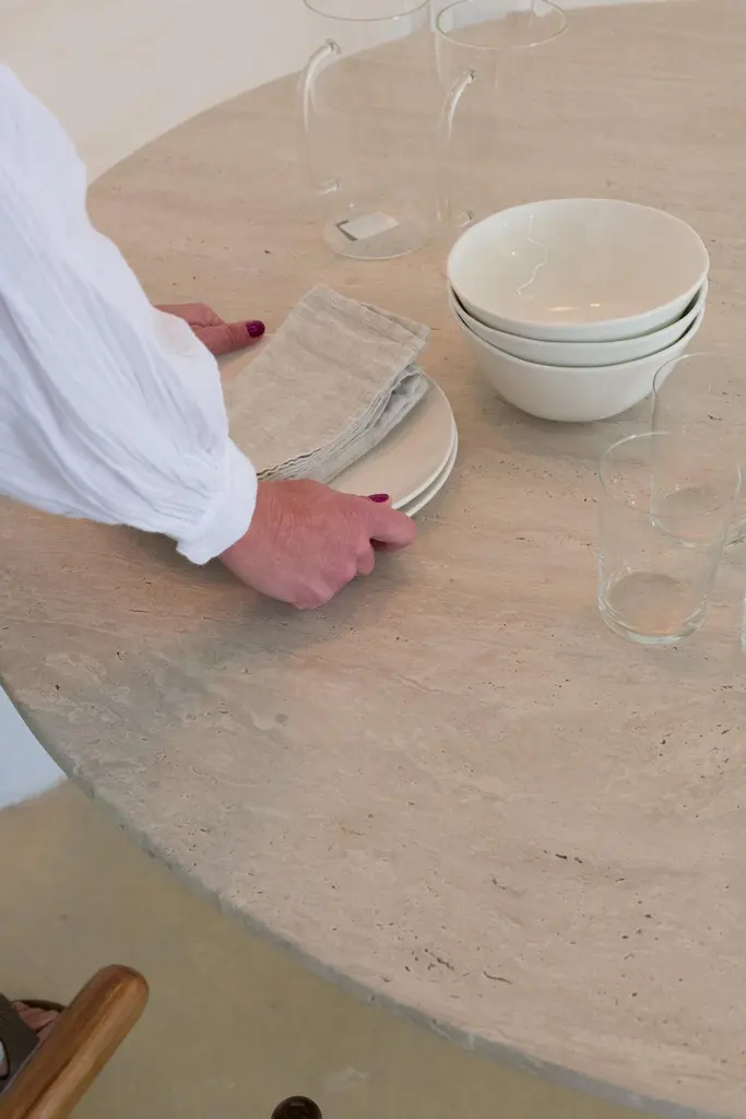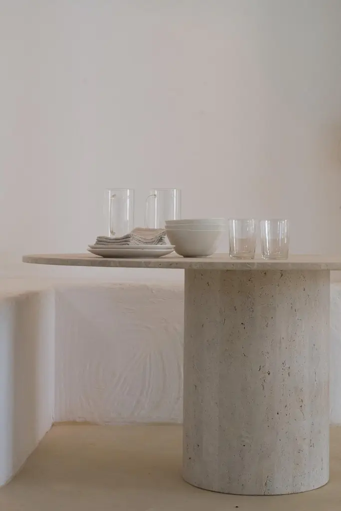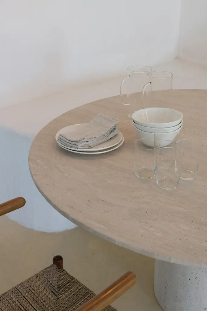 Round Top 140 Muted Beige Travertine Round Dining Table By Beije Avenue